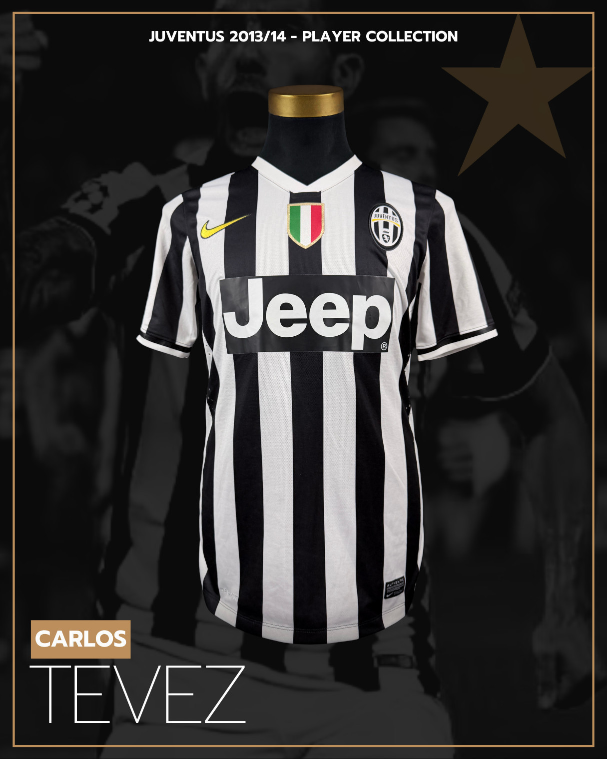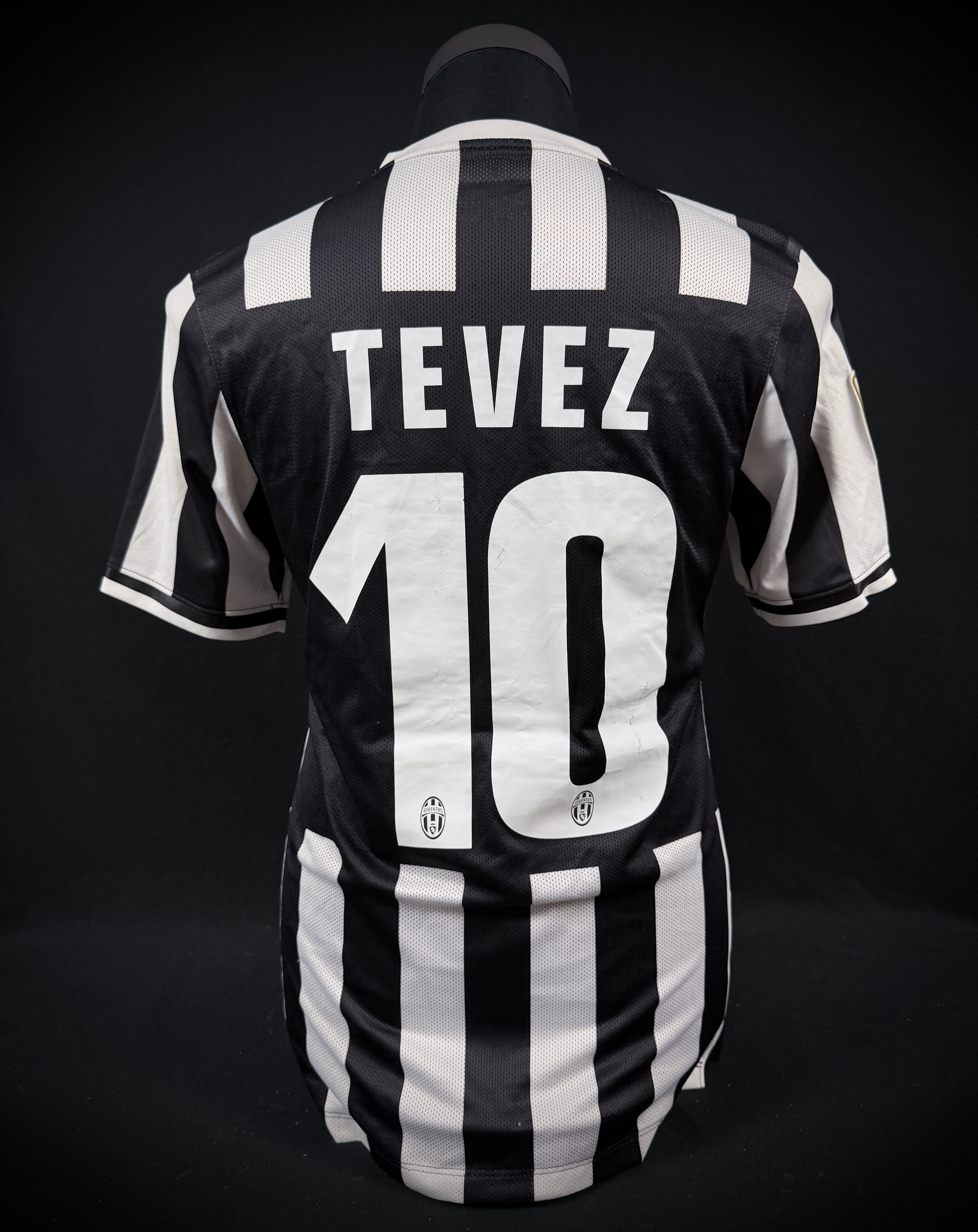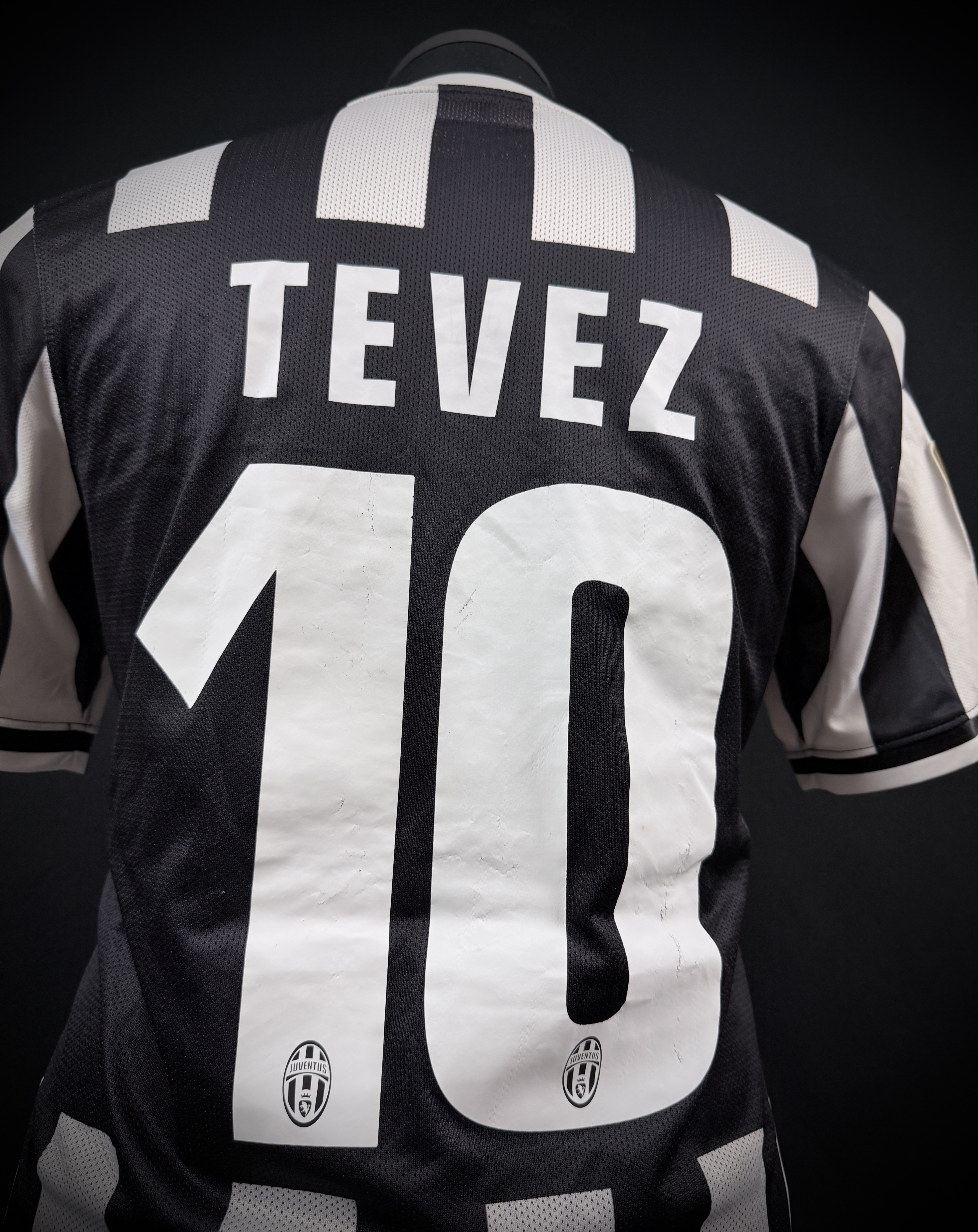 NOTE 2: SWAPPED AND WORN ON PITCH BY "EL APACHE". Jersey swapped on January 18th, 2014 for matchday 20 in turín after the match on pitch by Matias Rodriguez personal request. Rodriguez was unused player that day , and Tévez played until 86'.