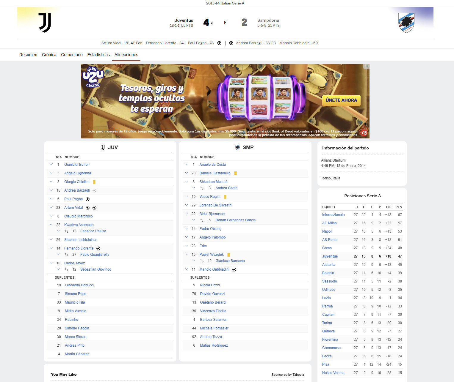 Game: JUVENTUS vs SAMPDORIA (4-2)