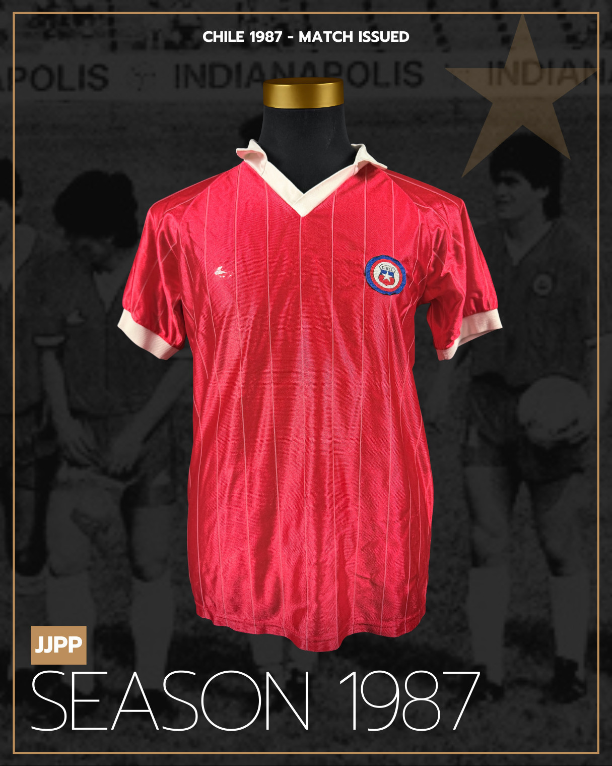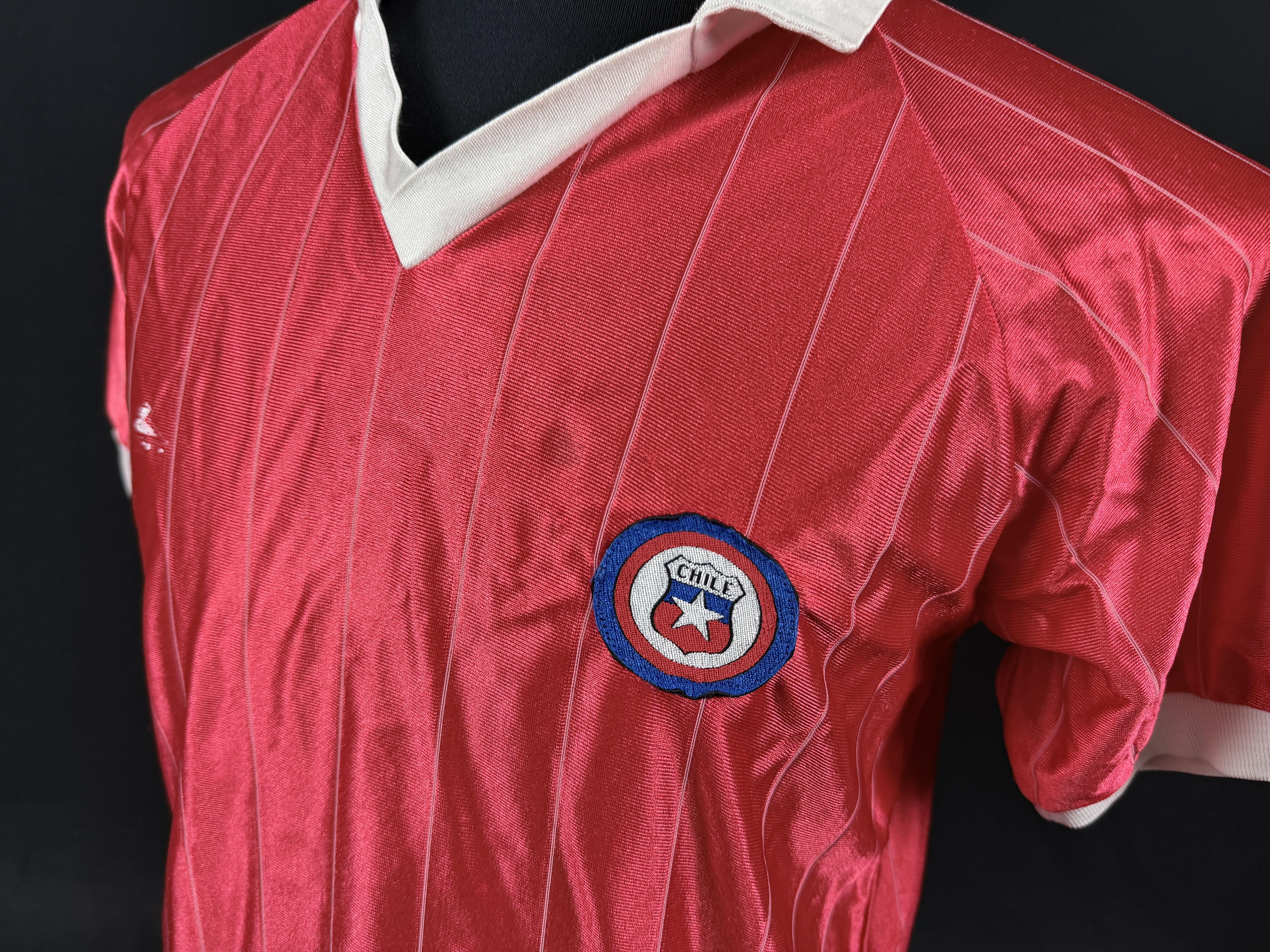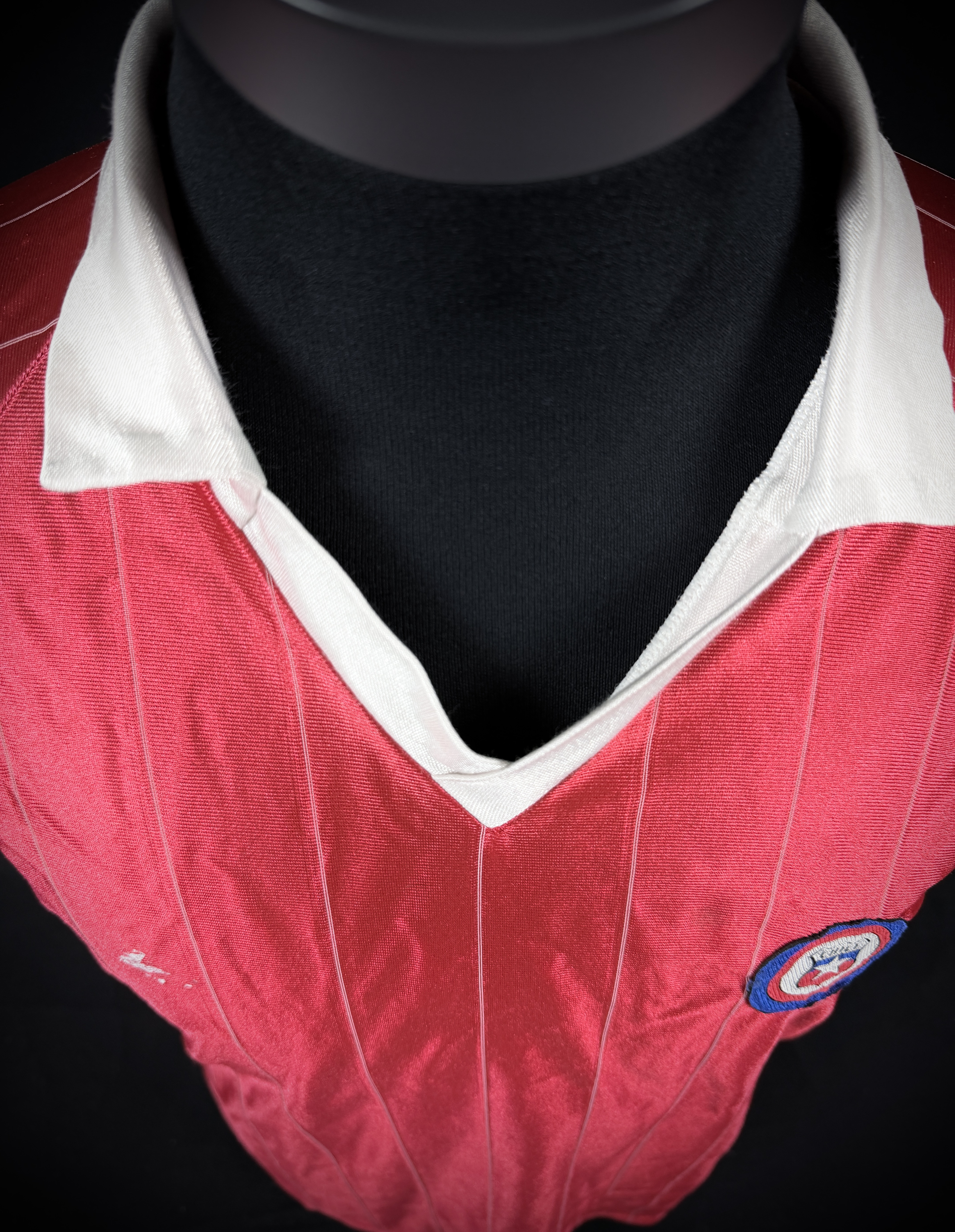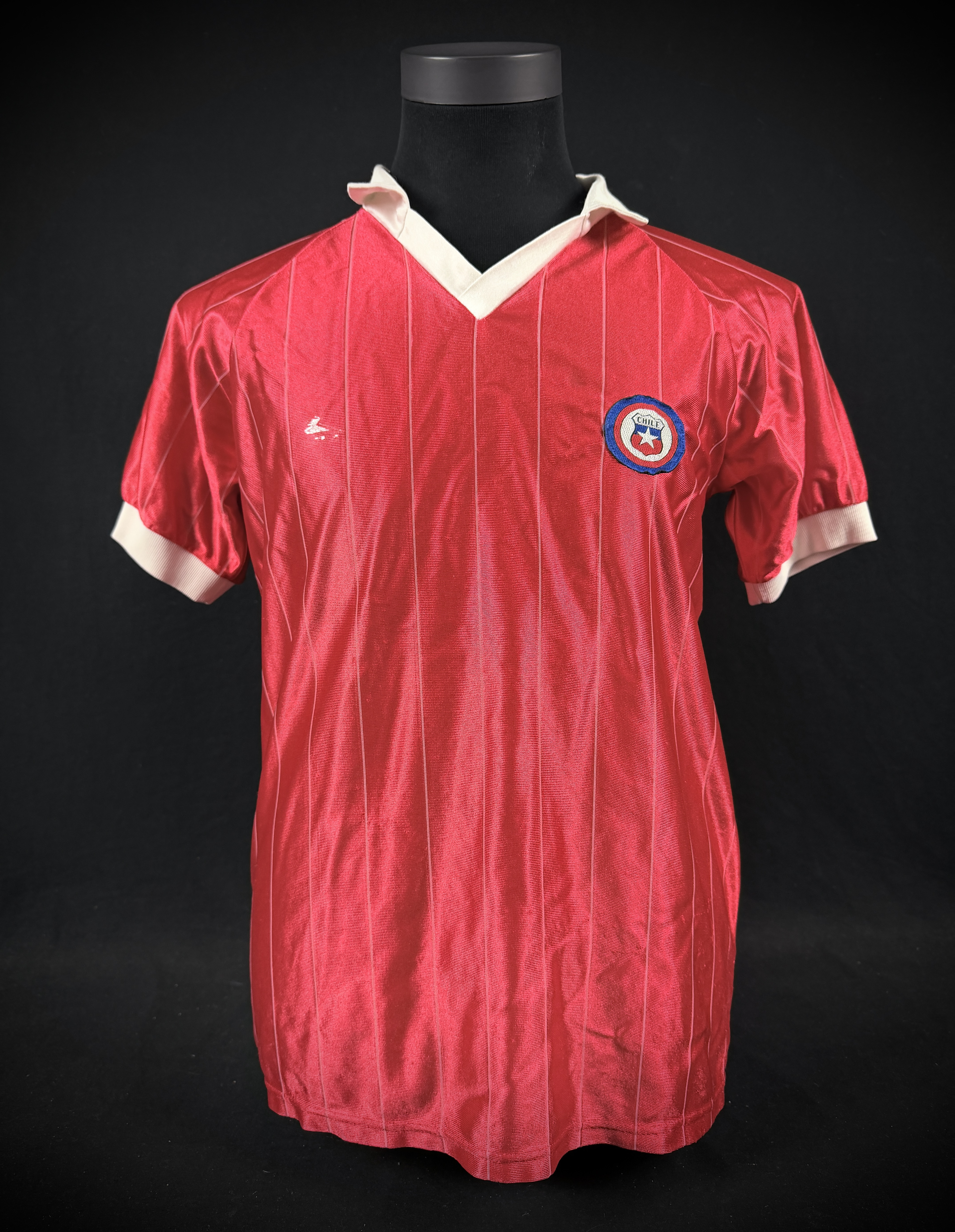 NOTE 1: Auctioned jersey has white collar, but as press photo from age chilea team did not use collar in their kits. So beleived to be unused spare from chilean kitroom.