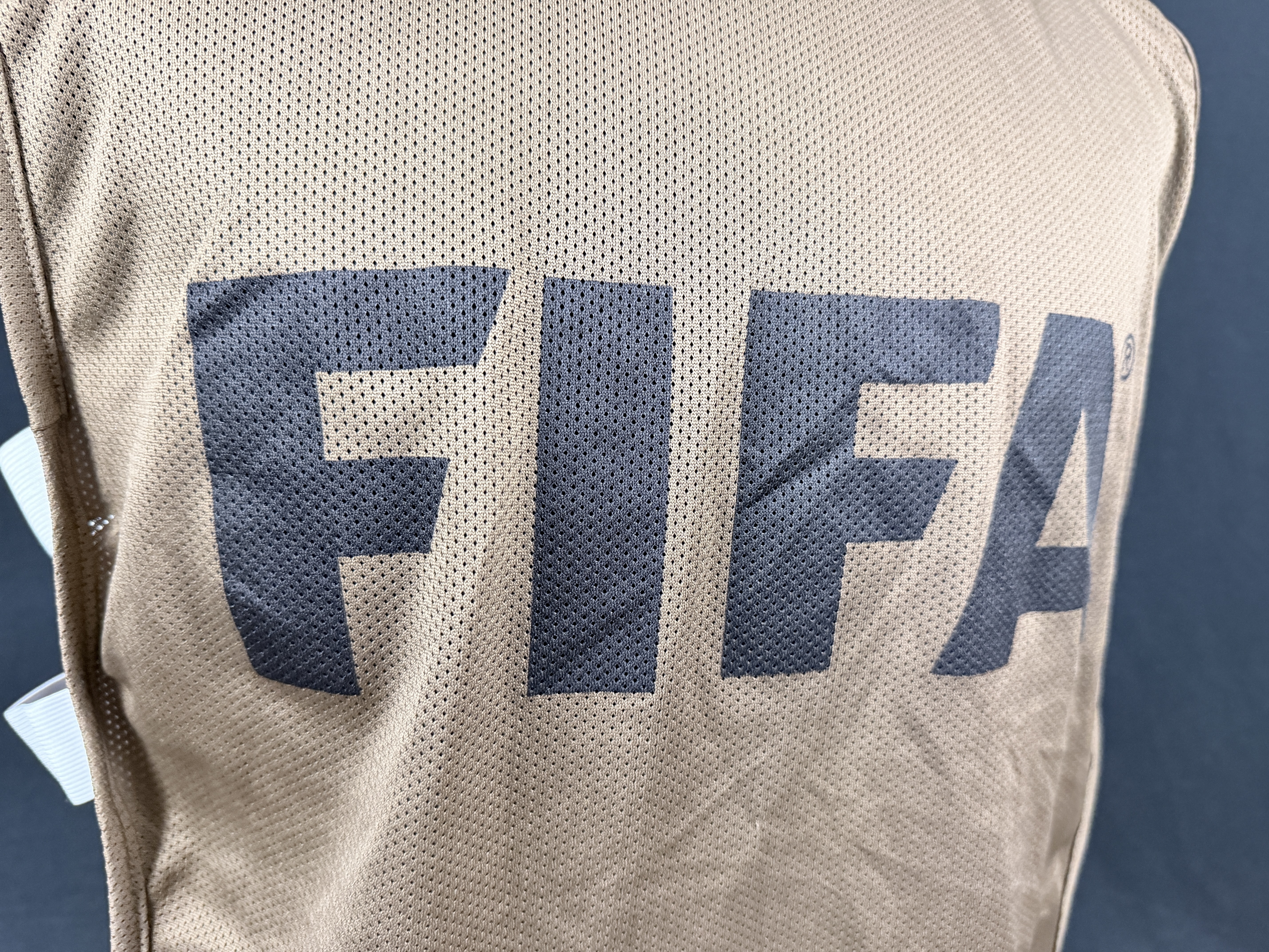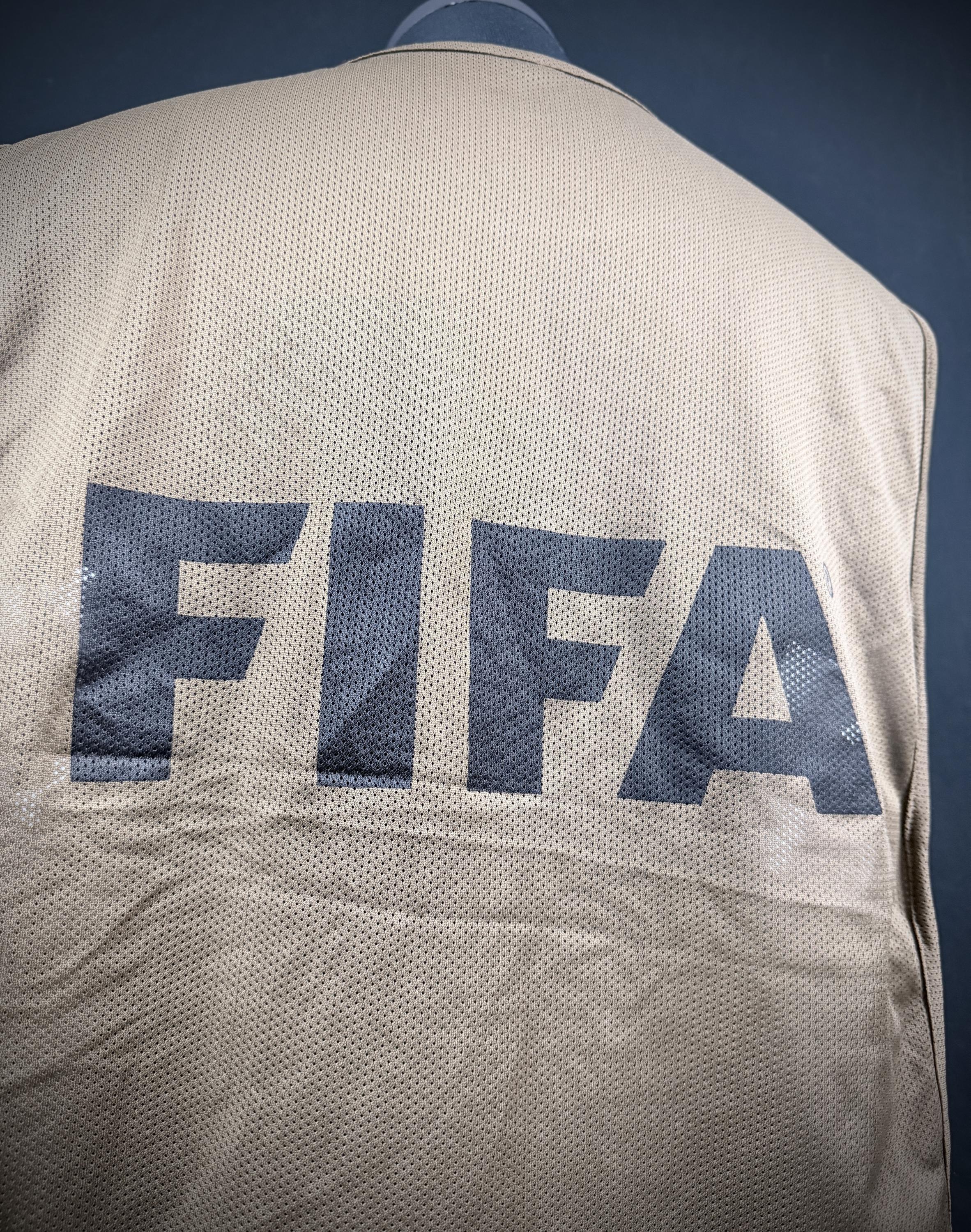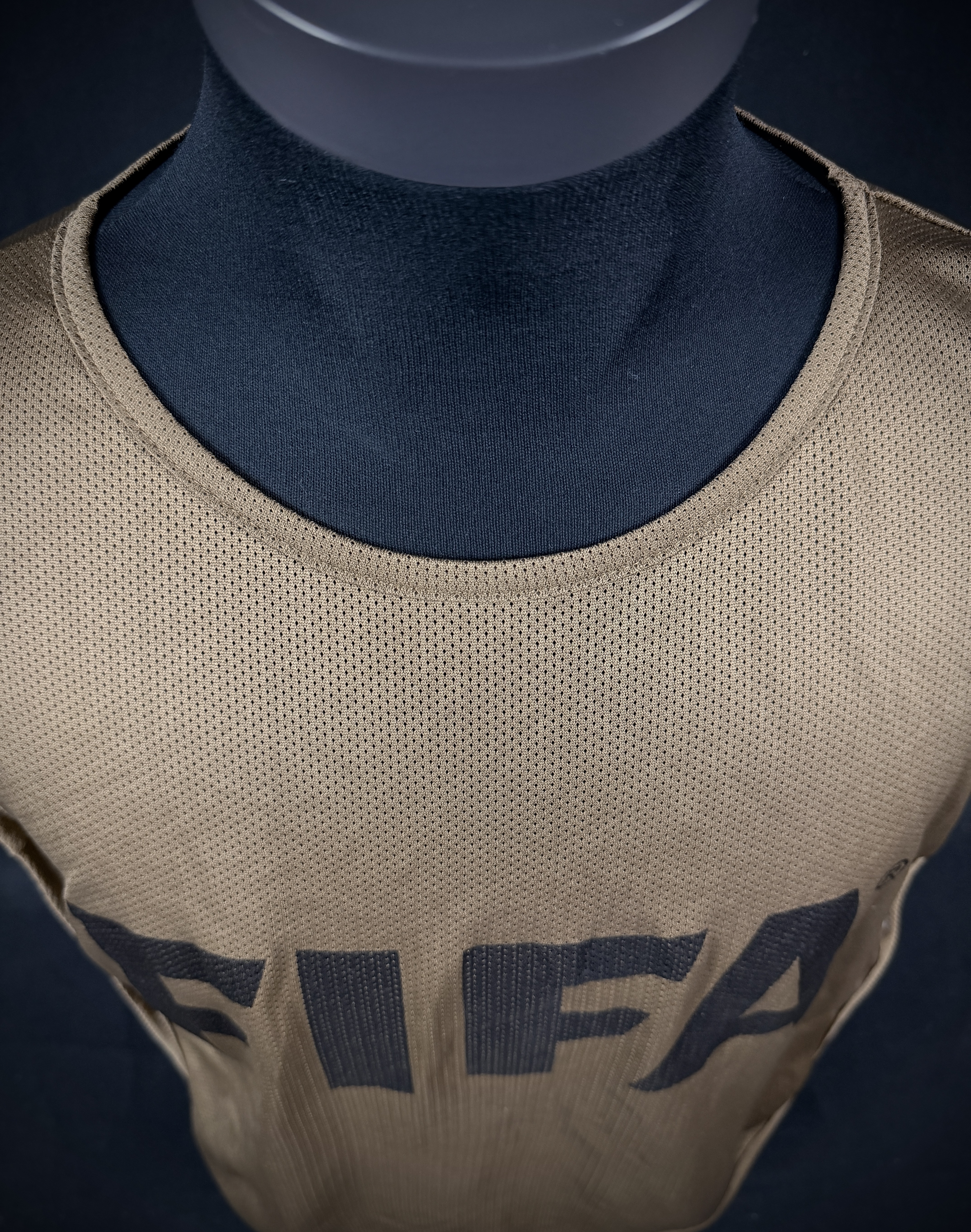 NOTE 1: Bench BIP worn by kitman during one of the match in 2014 World Cup while working in kitroom before, during and after the match. BIP different than the ones used by players that had "FIFA" stamped on front in white color. In this case for team members ( non players) the color of front stamped was black.