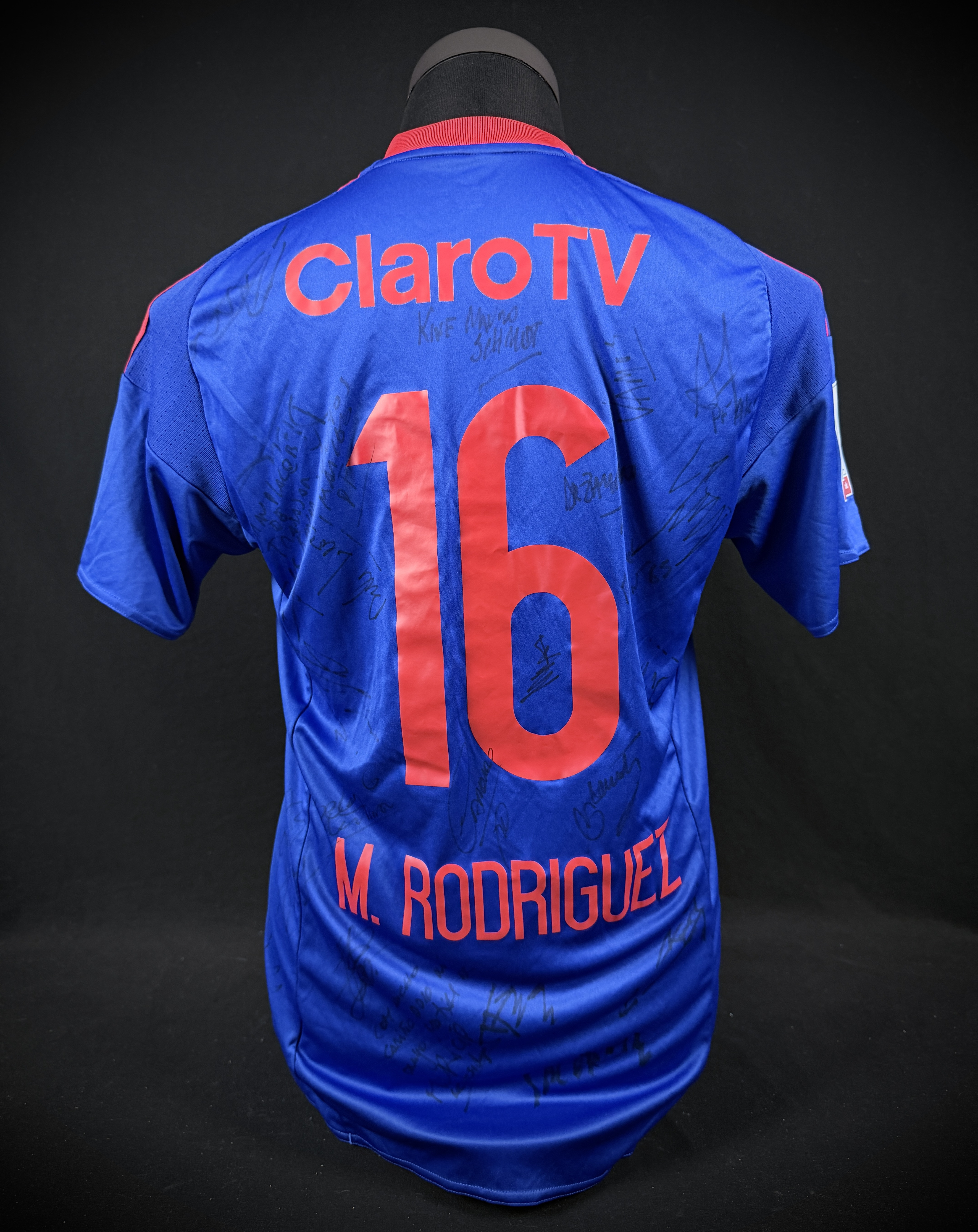 NOTE 1: SIGNED BY TEAM . Jersey worn by Mati Rodriguez during the 2016 season. Signed by all club members on front and back with black marker.