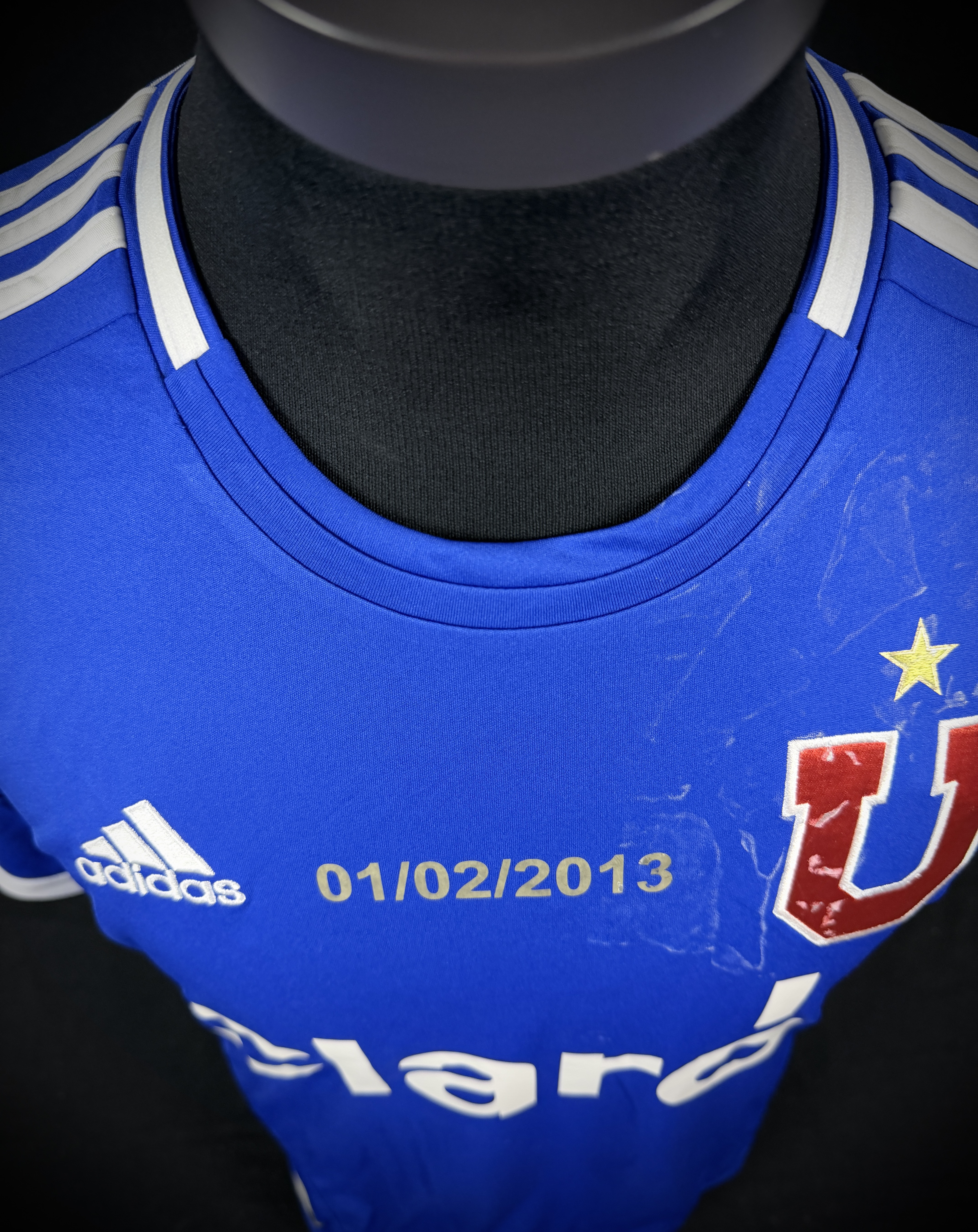 NOTE 1: SPECIAL FAREWELL MATCH GOLDEN JERSEY. Jersey gifted to Mati Rodriguez during his first stage last match at the club on February 01st, 2013 against Audax Italiano. Special edition with GOLDEN BACK NAME AND NUMBER and MATCH DAY stamped on front. "01/02/2013". Gifted before the match by club officers, Mati was unused player that day.