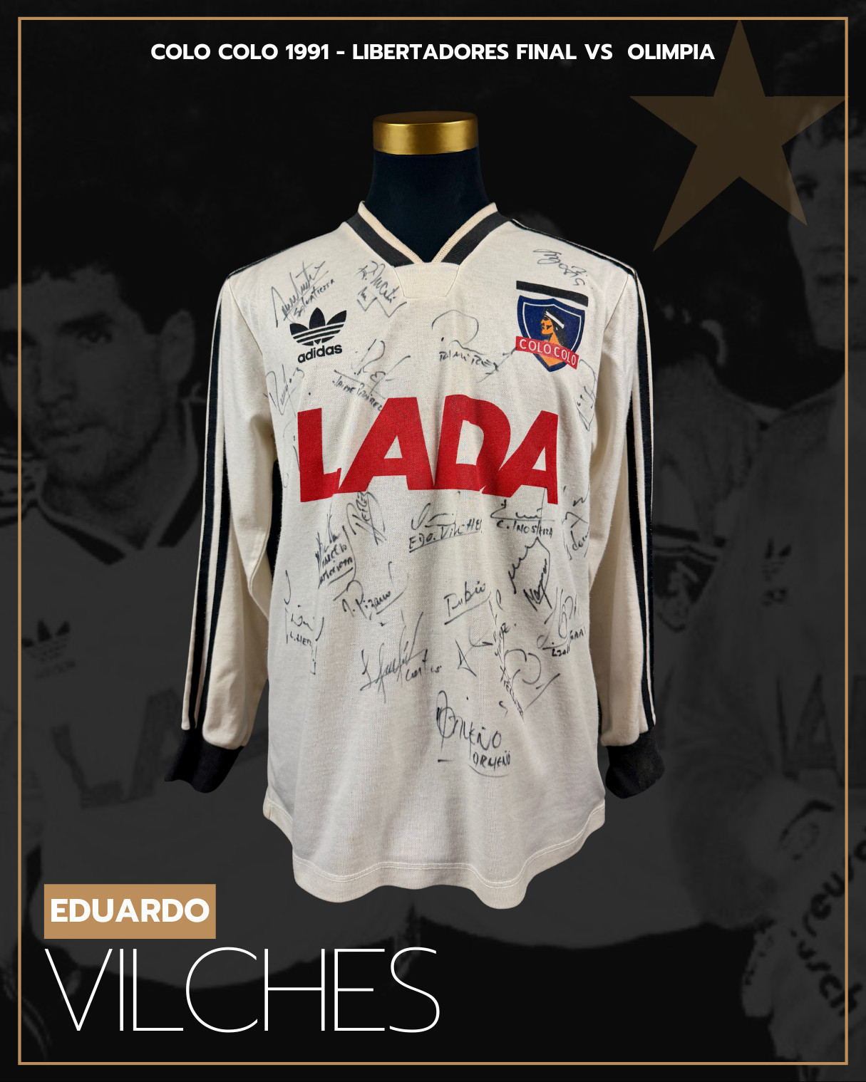 PROUD: As Dream Auction we are proud to present for third time a jersey worn in that memorable night when Colo Colo reached the biggest continental trophy for any chilean club, LA COPA LIBERTADORES DE AMÉRICA. With an beautiful story of provenance and with the certainty and consent of Eduardo Vilches himself confirming the authenticity of the piece and the match in which it was worn, this piece represents once again a great challenge for Dream Auctions, and we hope to rise to the occasion and place it in the best possible hands.