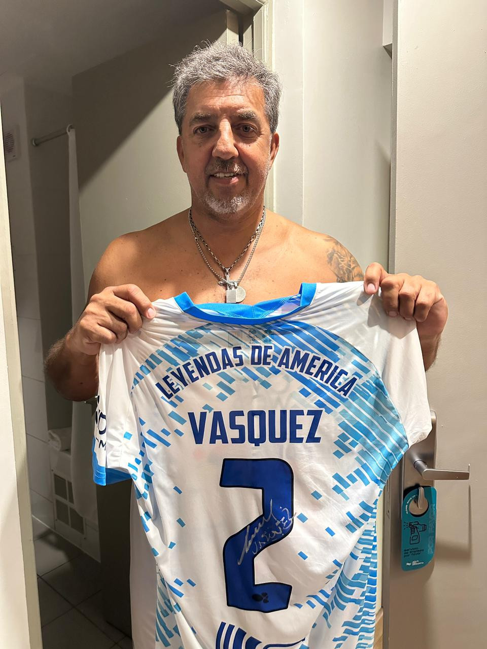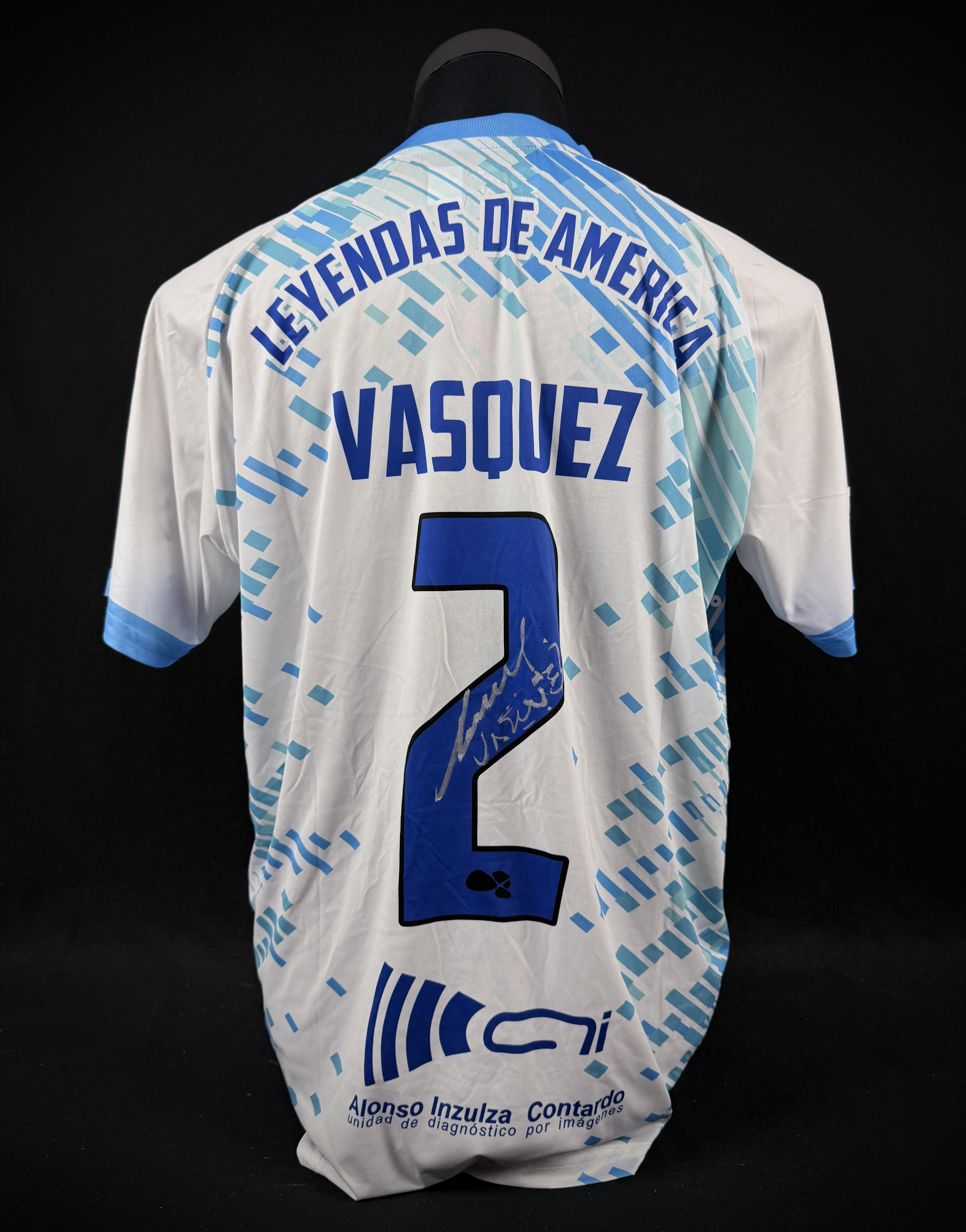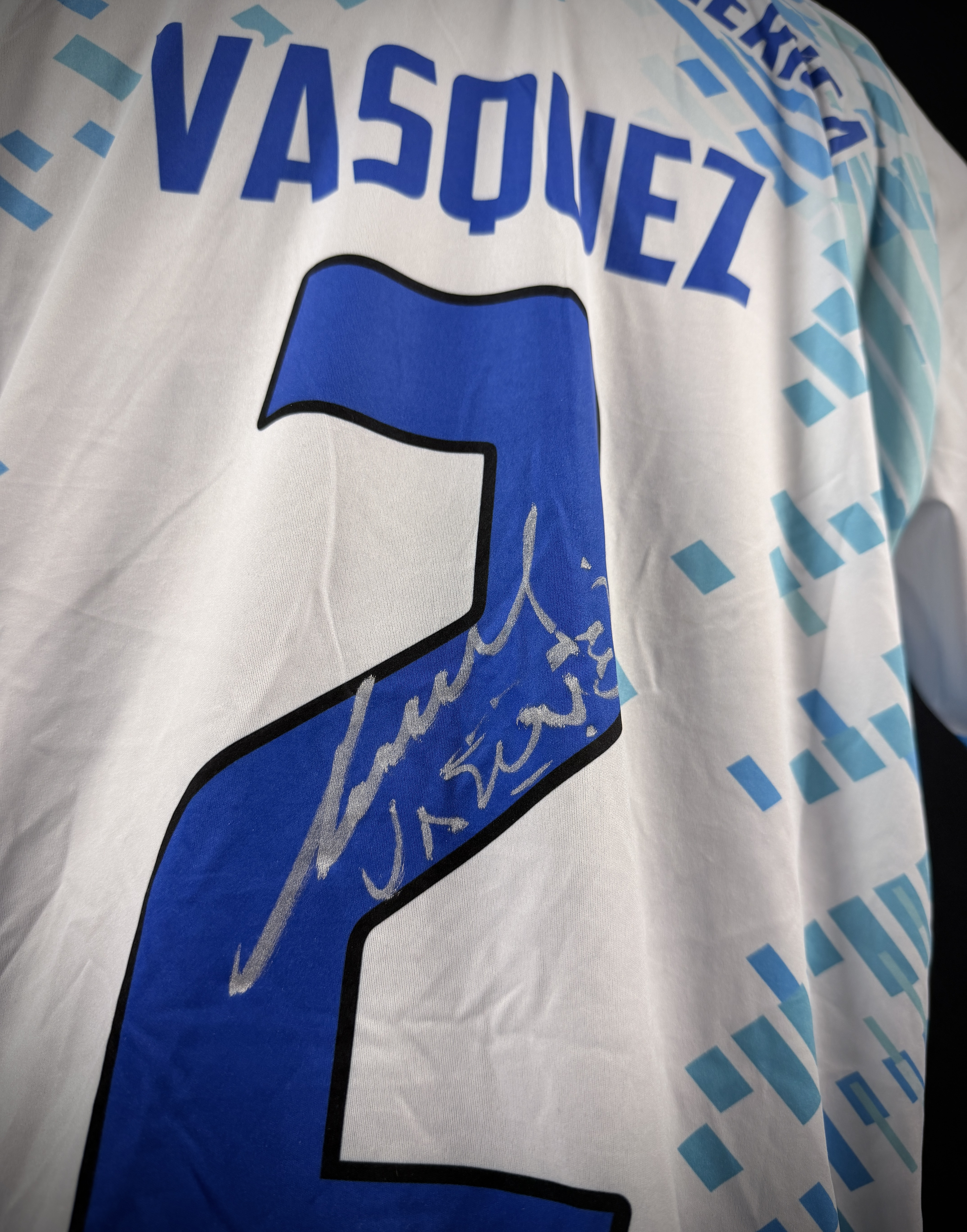 NOTE 1: UNWASHED AND SIGNED. Jersey worn by "Charly" Vásquez on pitch for the friendly game celebrating the "Zorros del desierto" stadium re inauguration. Signed in silver pen on the back number.