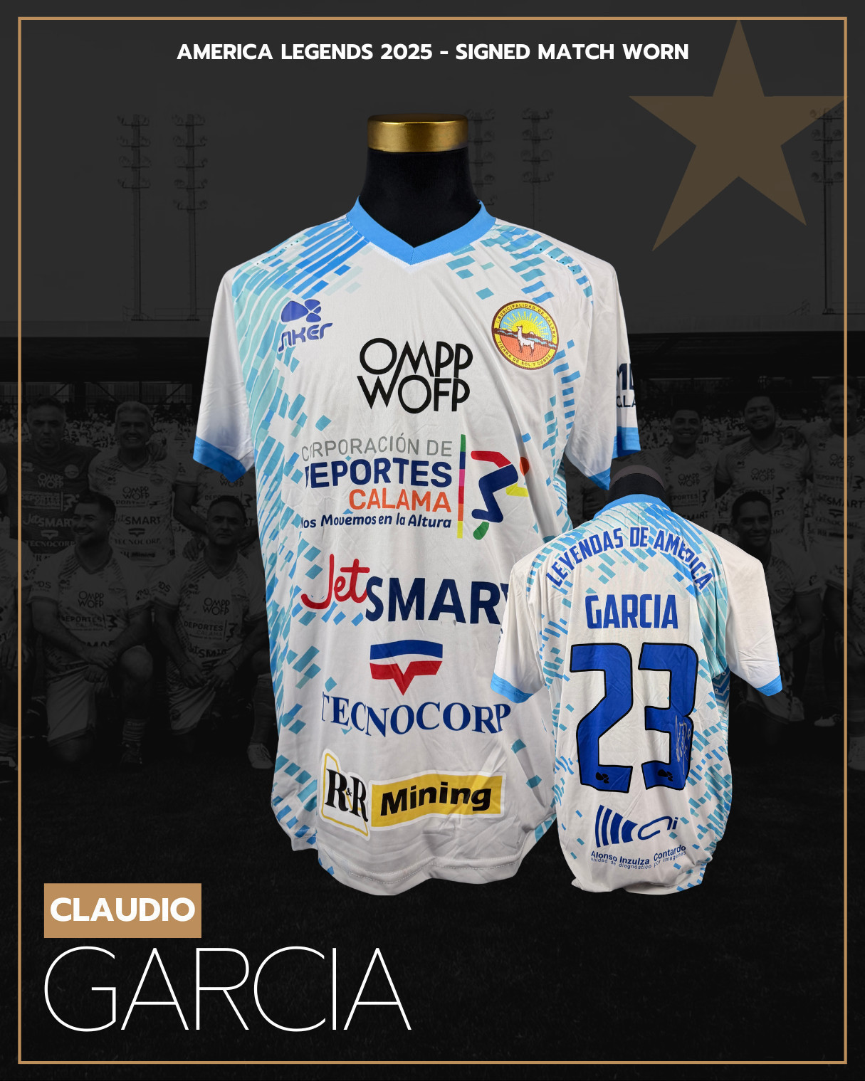 PROVENANCE: UNIQUE. Jersey comes direct from Claudio "Turco" Garcia, and was given by player himself for charity purpose.