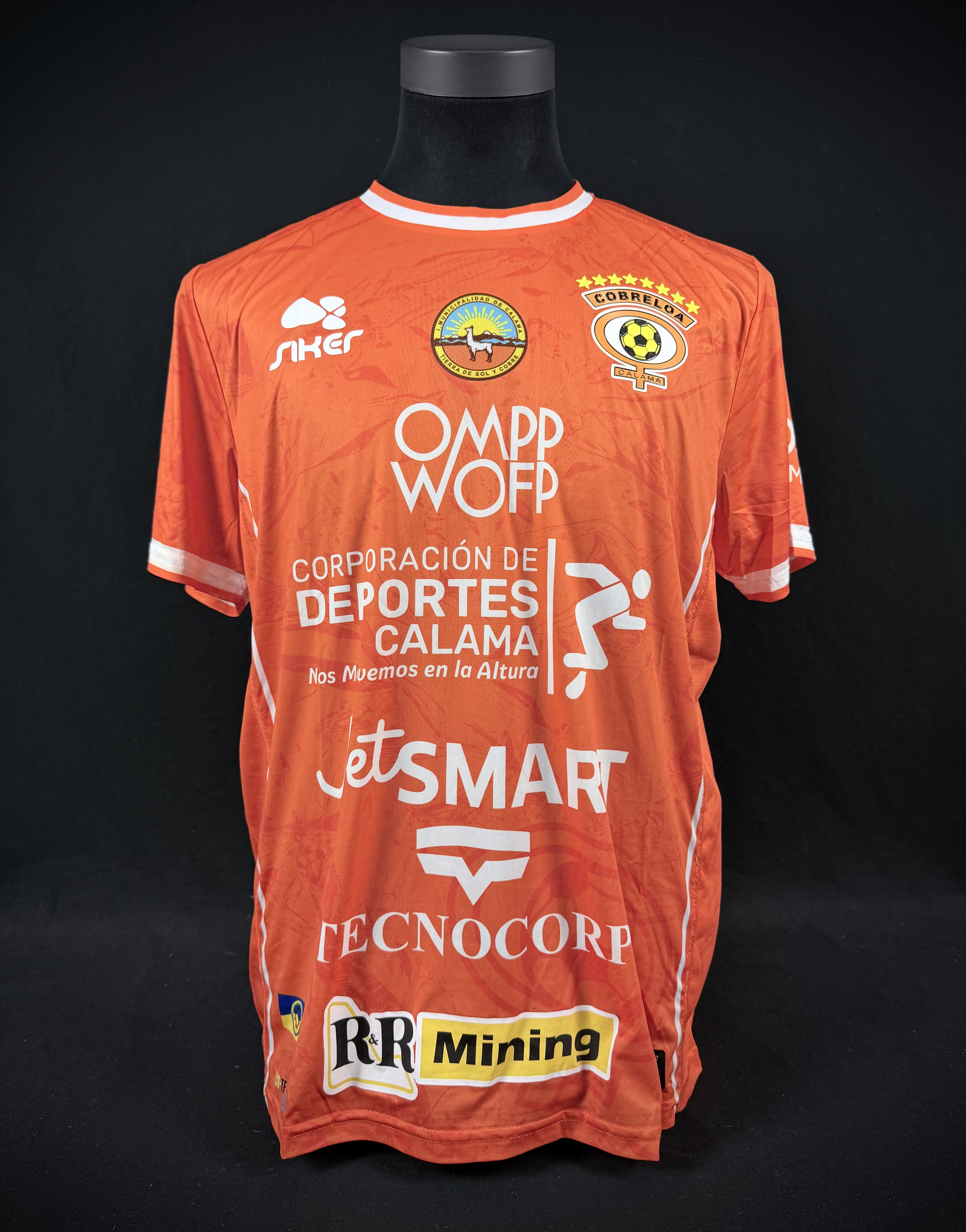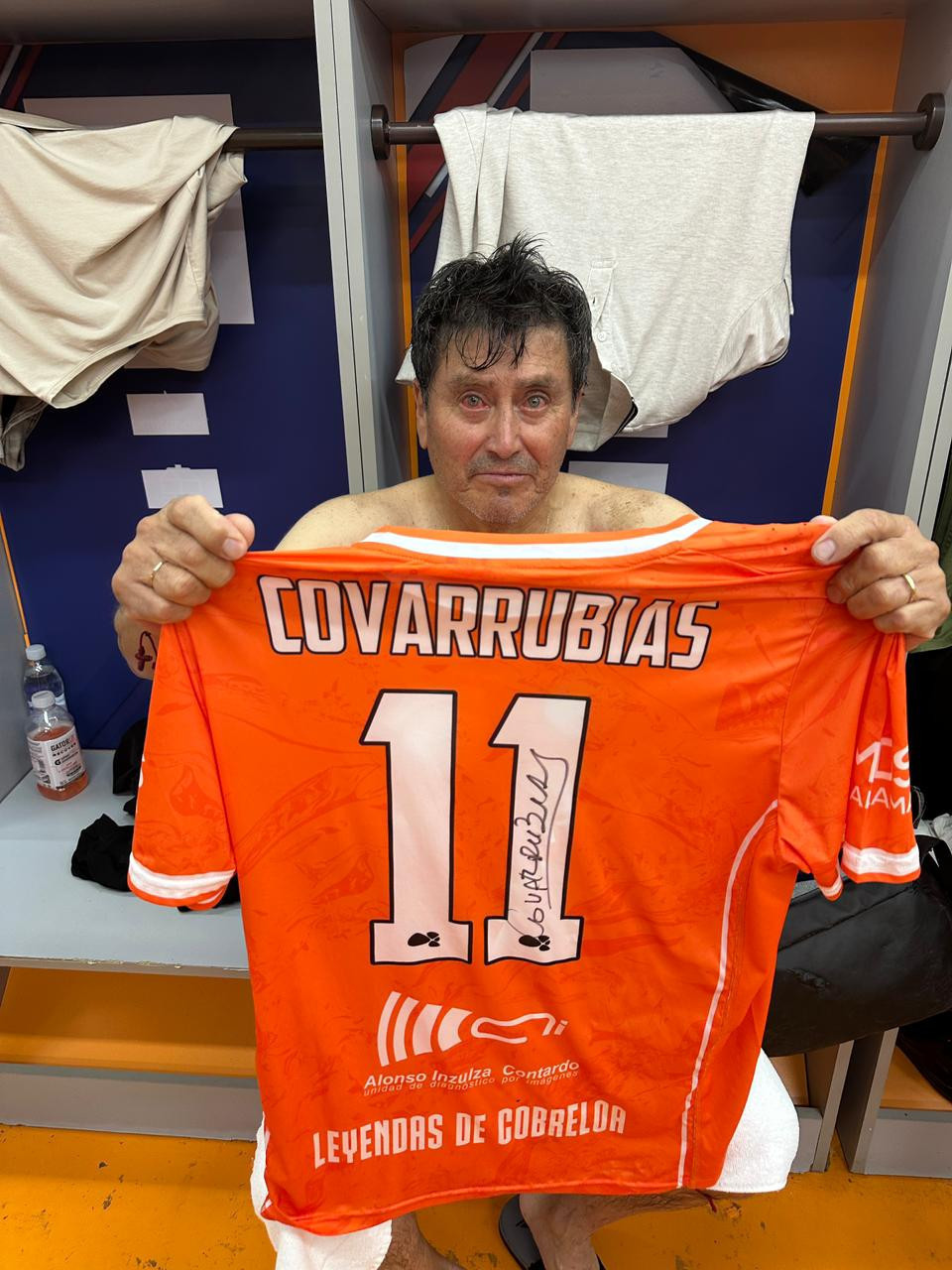 NOTE 1: UNWASHED AND SIGNED. Jersey worn by cobreloa legend Covarrubias on pitch for the friendly game celebrating the "Zorros del desierto" stadium re inauguration. Signed in black pen on the back number.