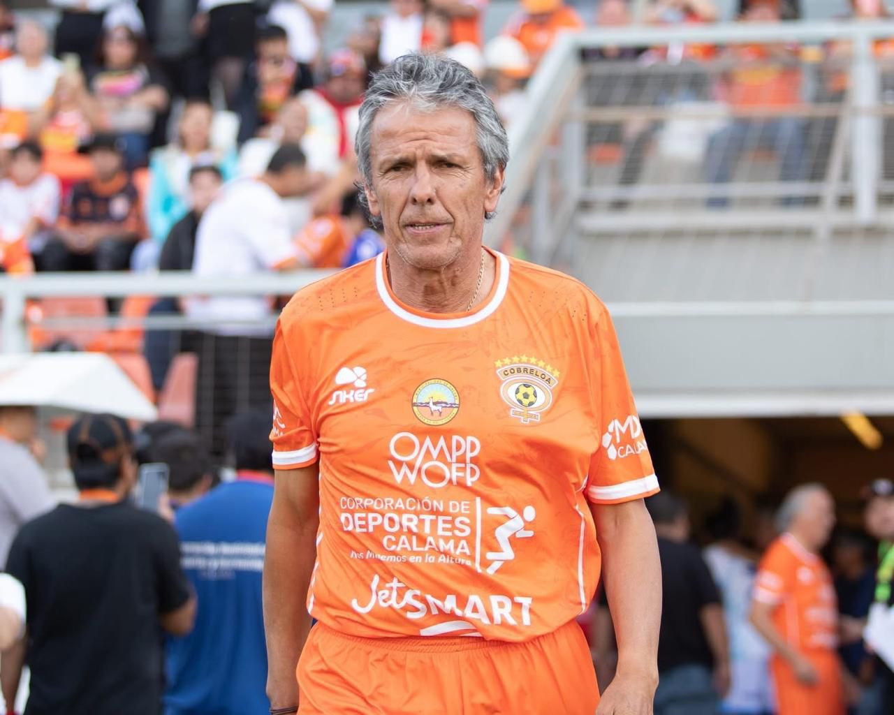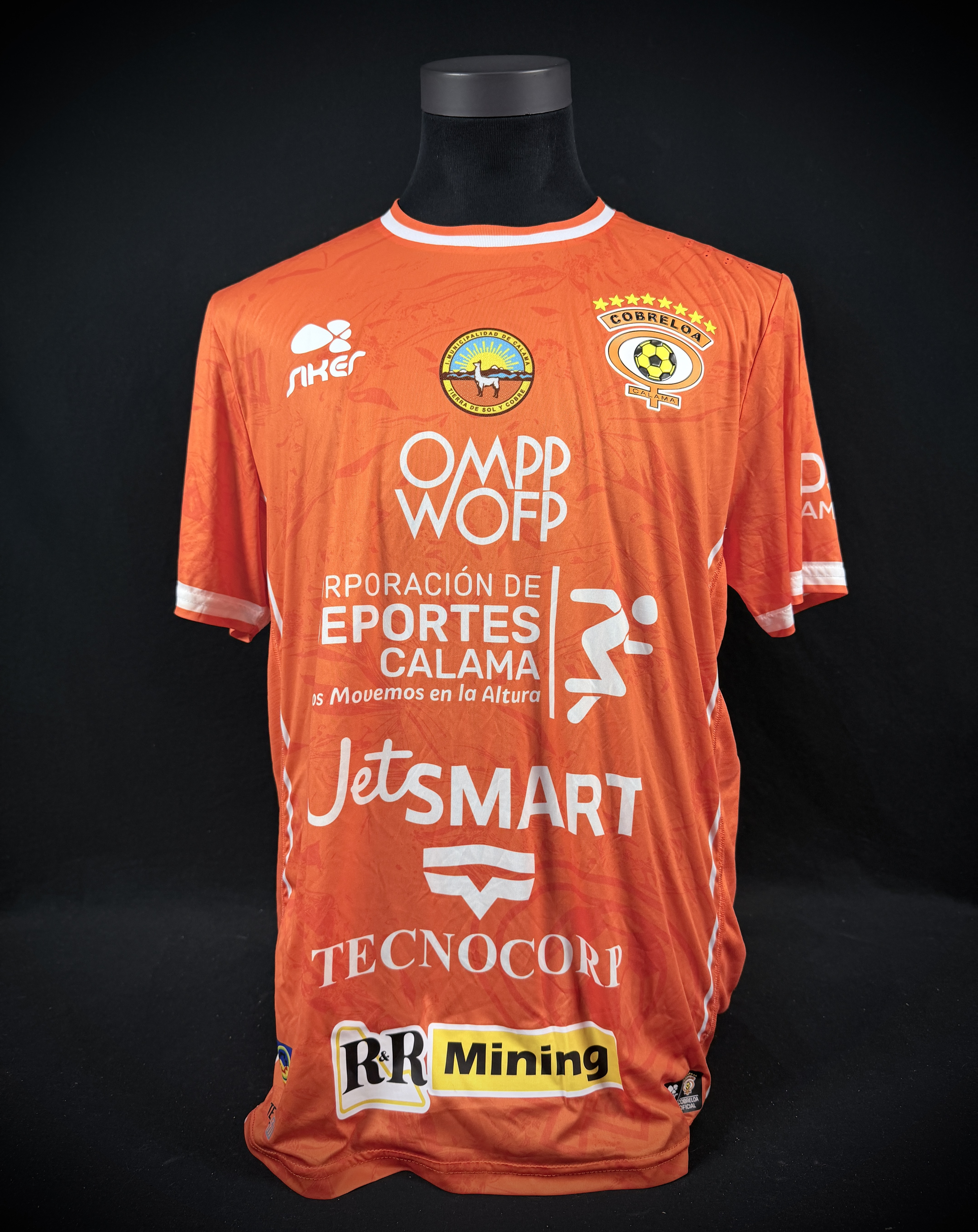 NOTE 1: UNWASHED AND SIGNED. Jersey worn by cobreloa legend "Mocho" Gómez on pitch for the friendly game celebrating the "Zorros del desierto" stadium re inauguration. Signed in black pen on the back number.