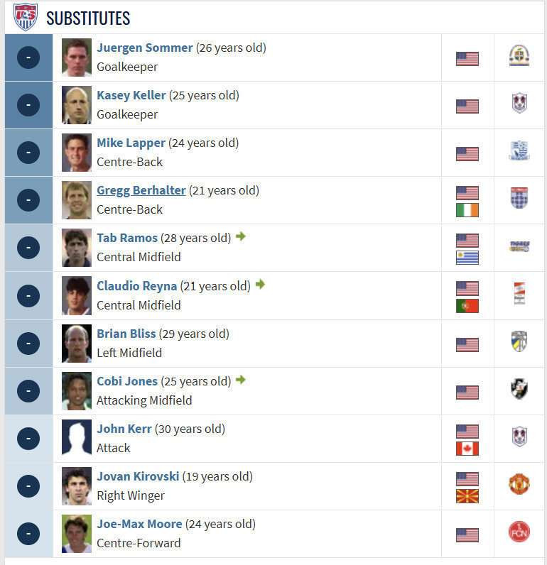 NOTE 1: 1995 AMERICA CUP. Jersey was swapped after match in kitroom with Pérez for America Cup group stage in Paysandú on July 08th, 2001. Pérez was unused player that day and Gregg Berhalter also was kept in bench for USA.
