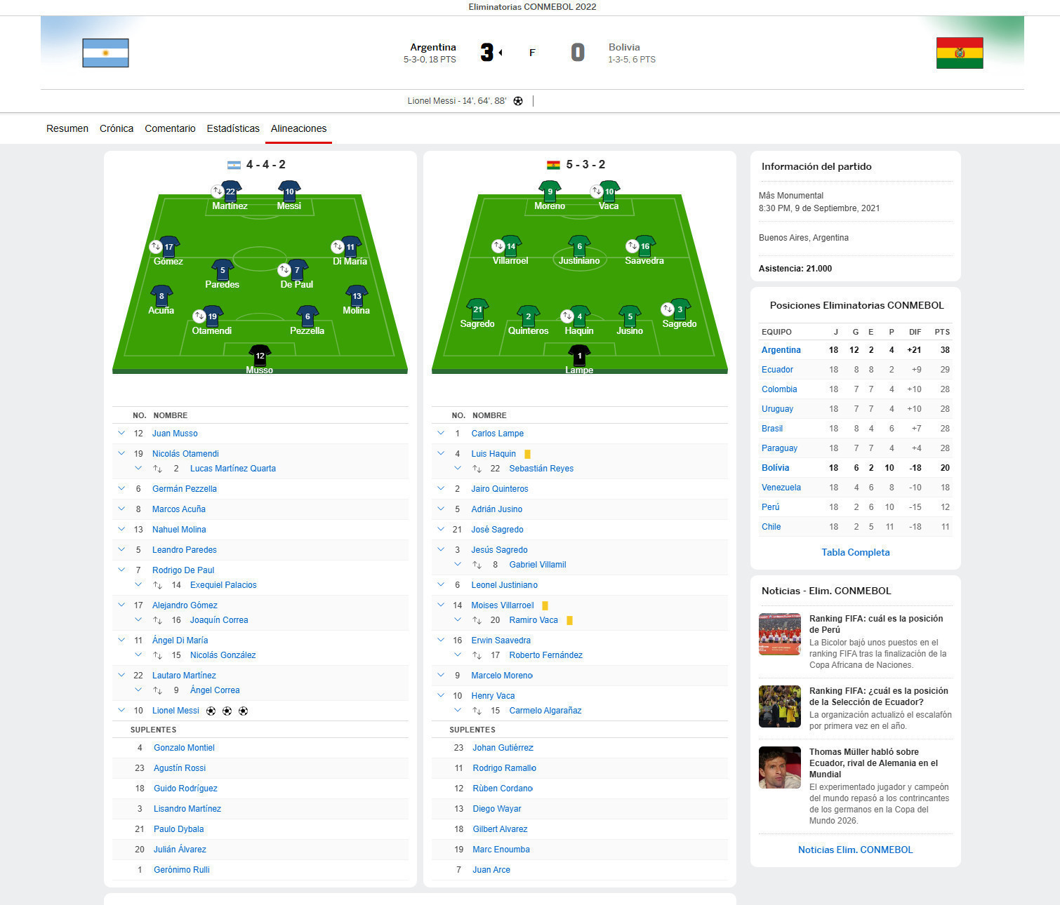 Game: ARGENTINA vs BOLIVIA (3-0)