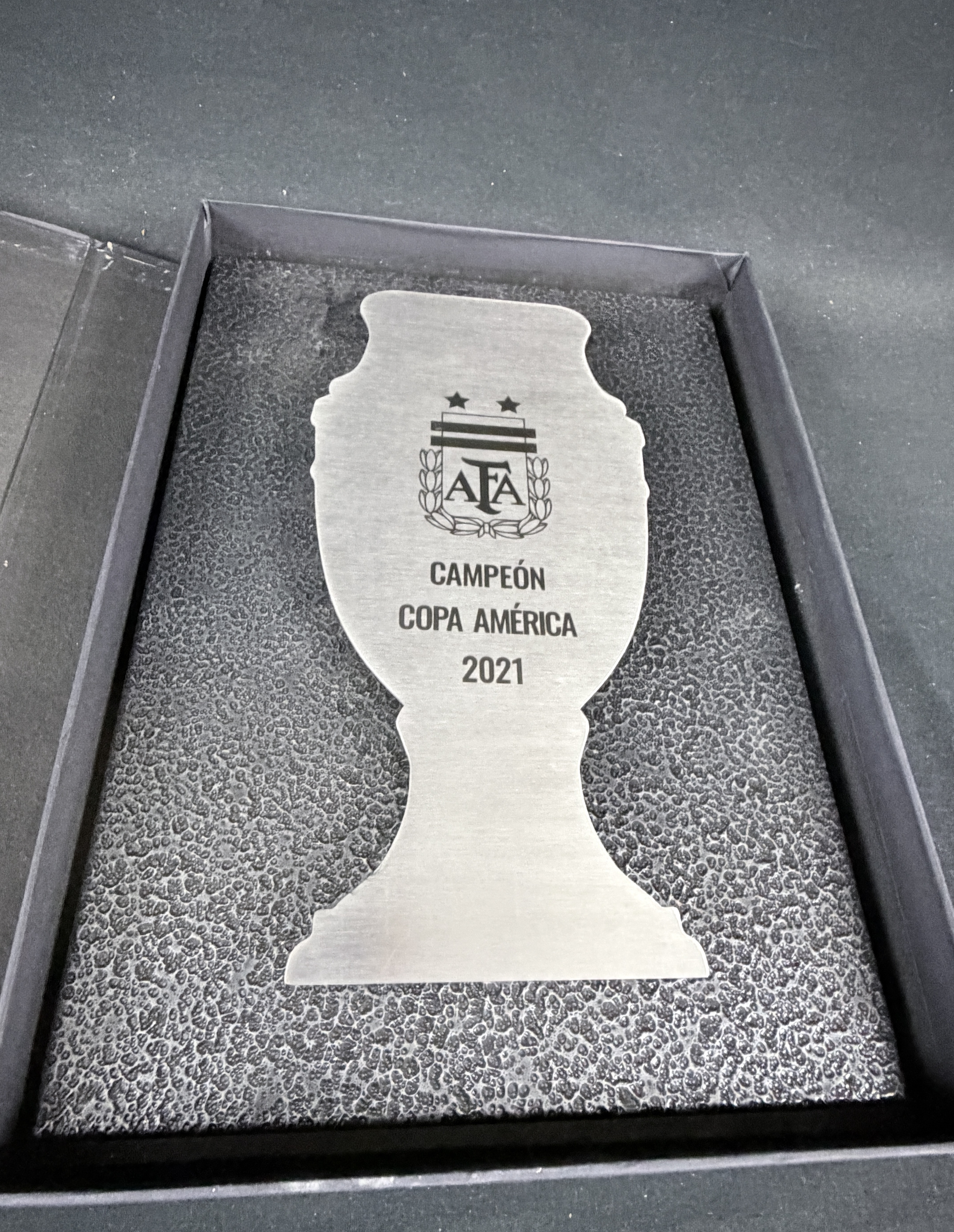 PROVENANCE: Trophy box got in direct source from Argentina national team officer, and was one of the original units issued by AFA Federation to be delivered to all champions players.