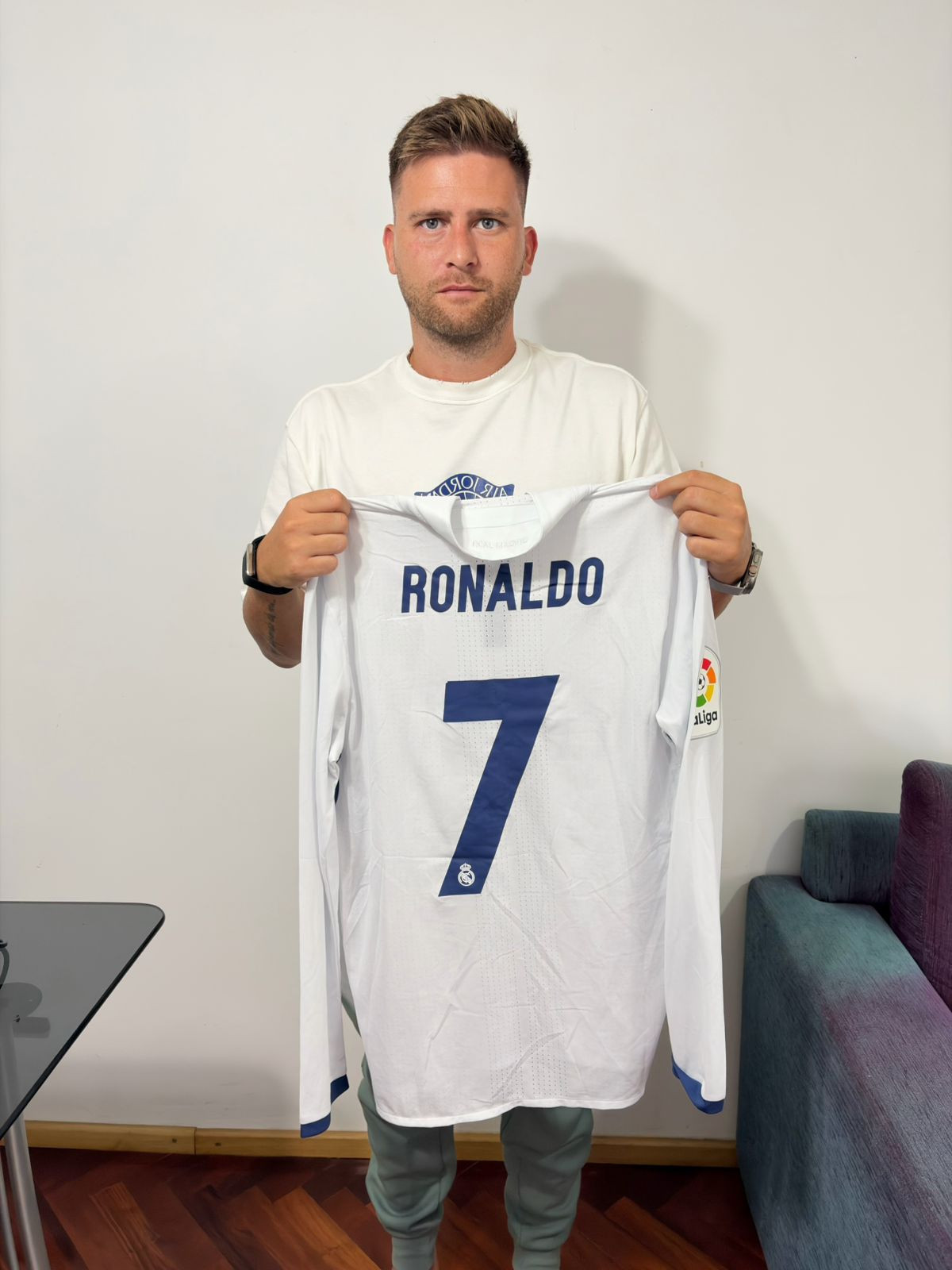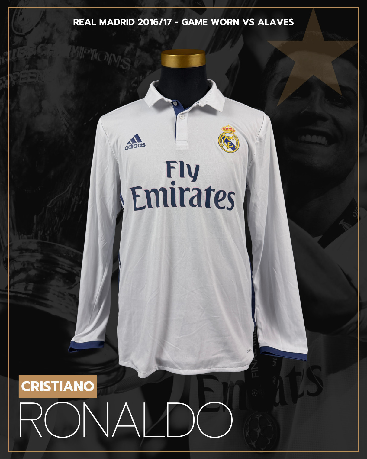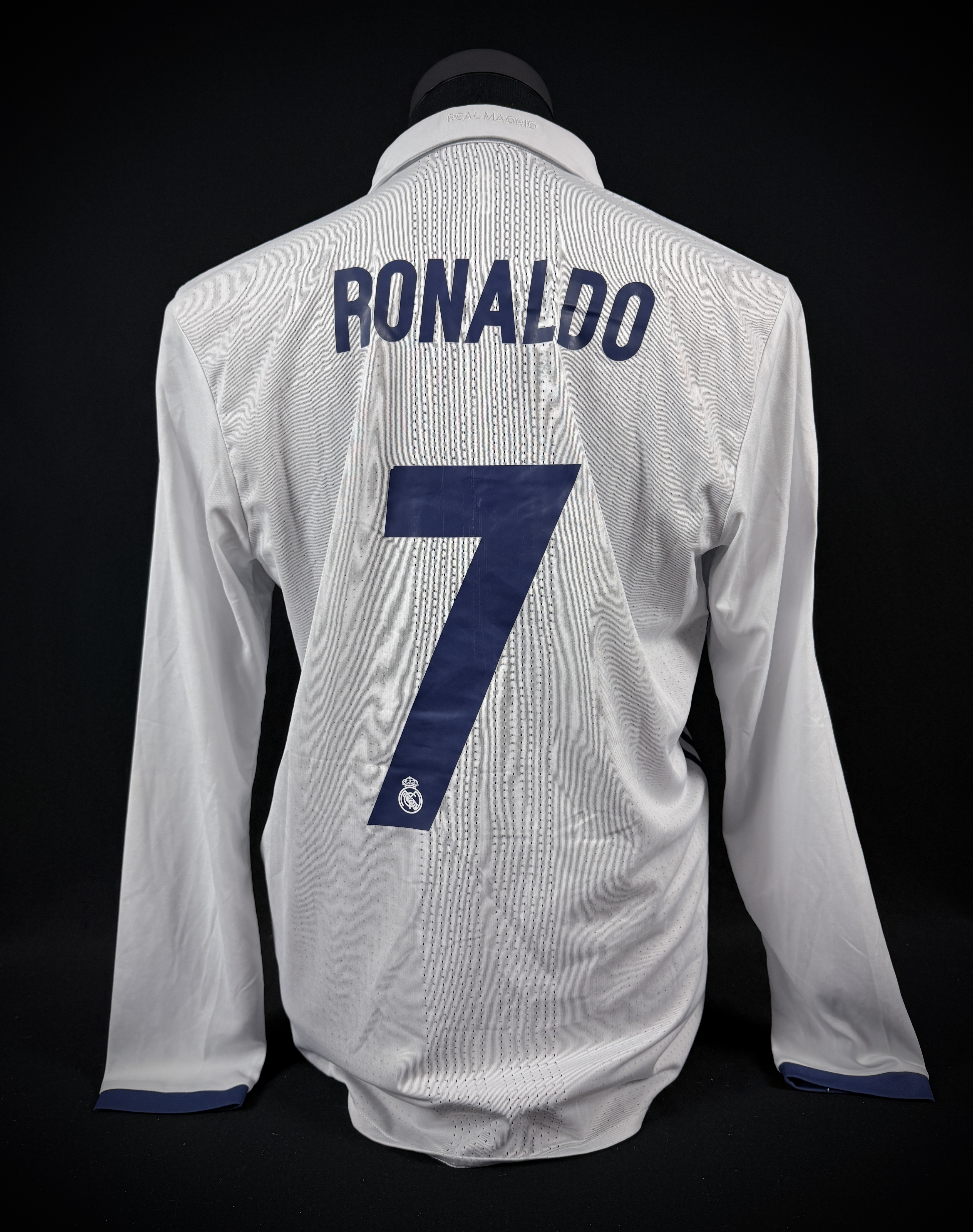 SWAPPED WITH HAT-TRICK. Long sleeved jersey worn on pitch and swapped after a known match by Edgar Sanchéz with GOAT Cristiano Ronaldo on October 29th, 2016 during the matchday 10 in season 2016/17. Jersey swapped due Mendez request to Cristiano. Cristiano scored hat-trick that night!