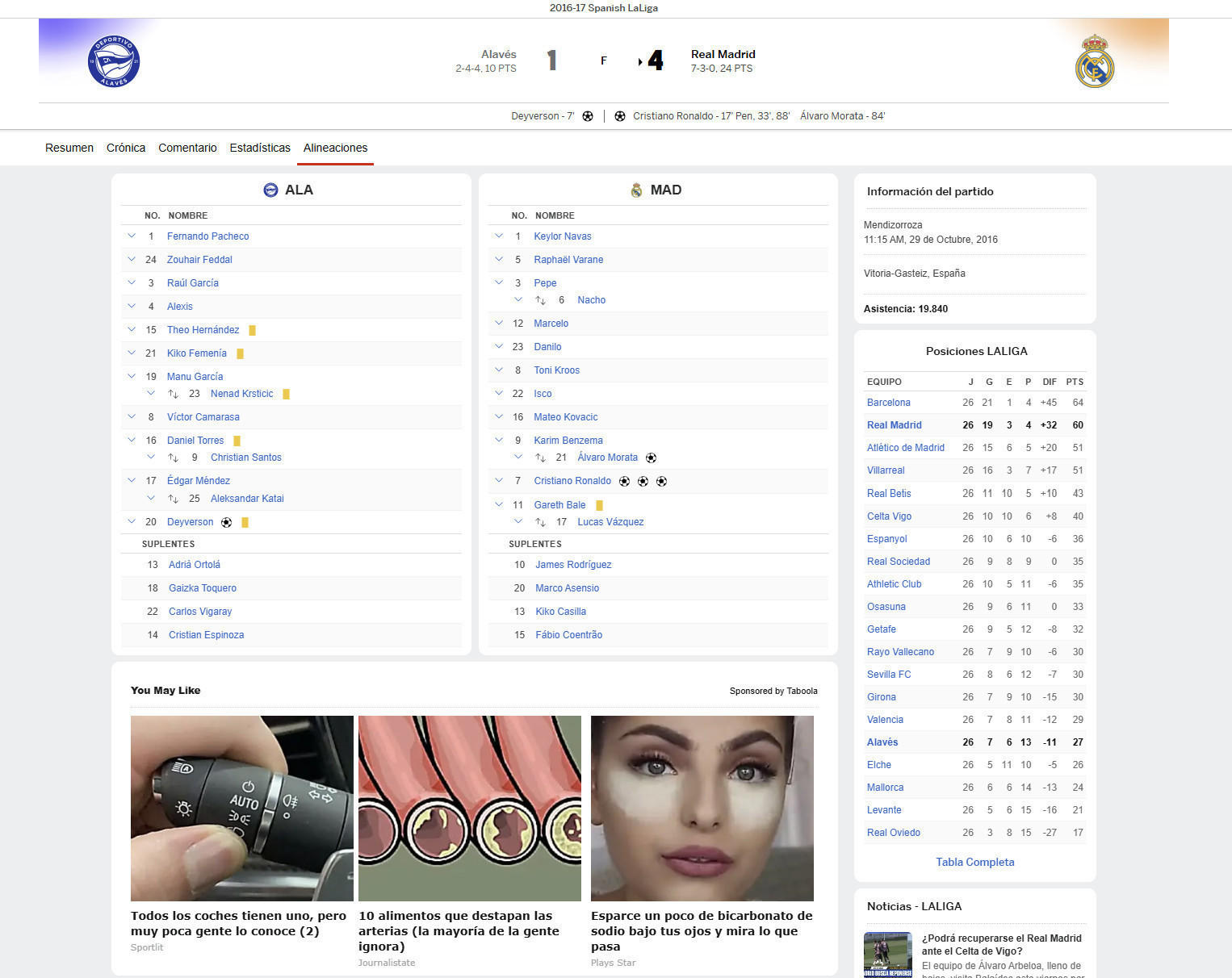 Date: 29/10/2016 | Mendizorroza Stadium | Vitoria, Spain.