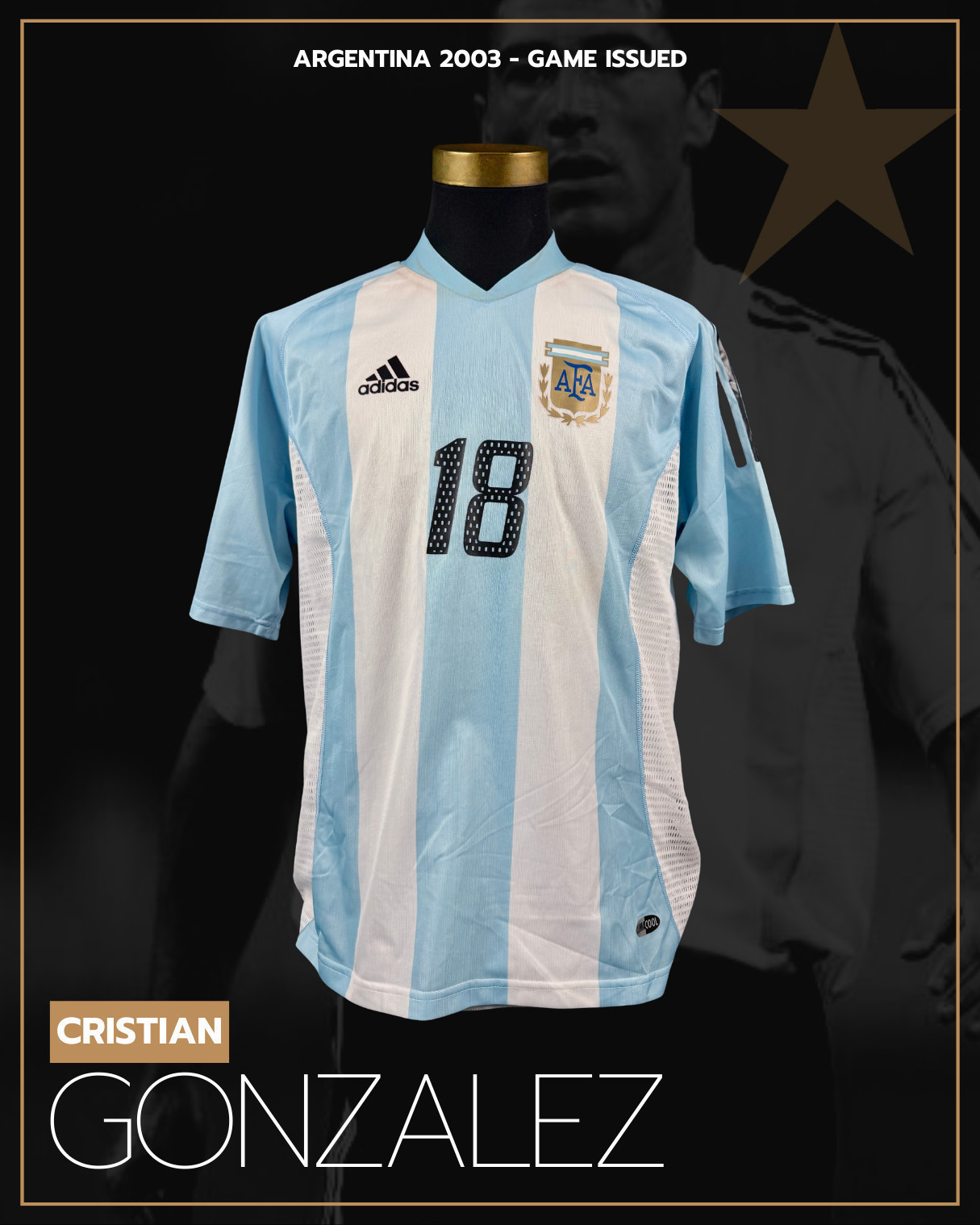 NOTE 1: YOUR CHANCE TO HAVE A REAL KNOWN GAME JERSEY OF "EL KILY". Full dual layer jersey issued to be worn on pitch on August 20th, 2003 for a friendly match in Florenze, Italy, and swapped after the match by argentinan legend Cristian Gonzalez with Alejandro Lembo Amazing design full double layer very sought after for any match worn collector.