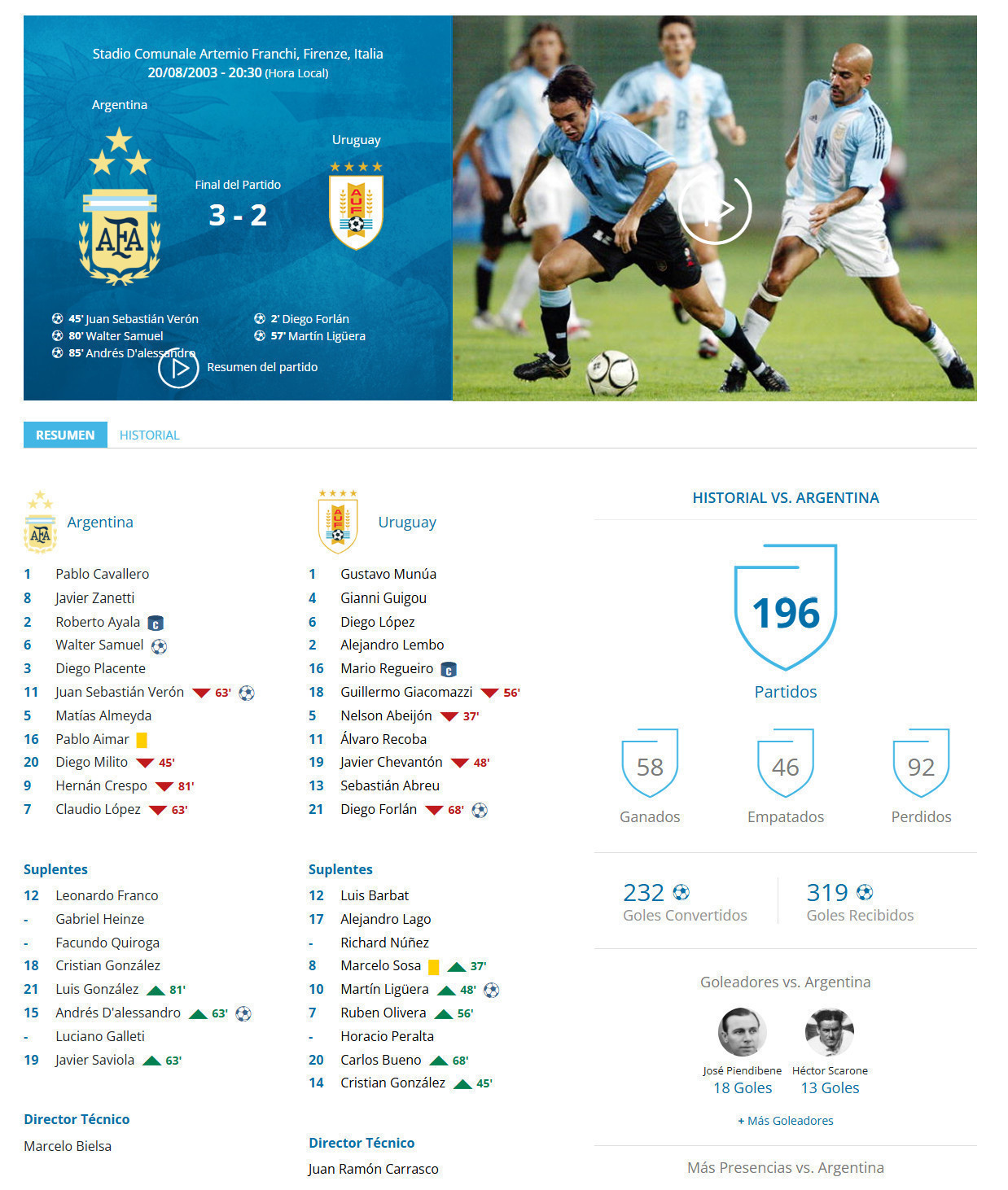 Date: 20/08/2003 | Artemio Franchi Stadium | Fiorenze, Italy.