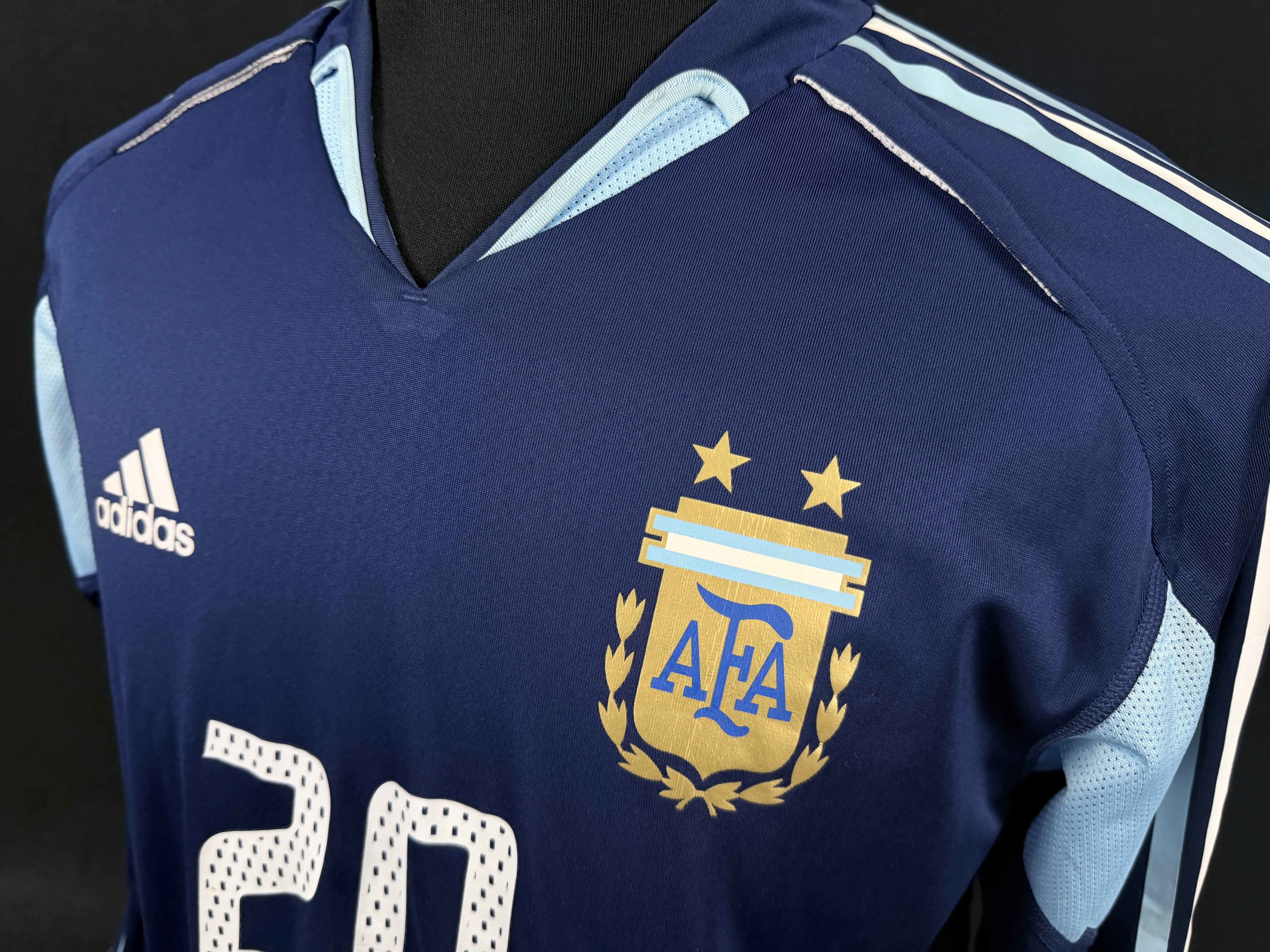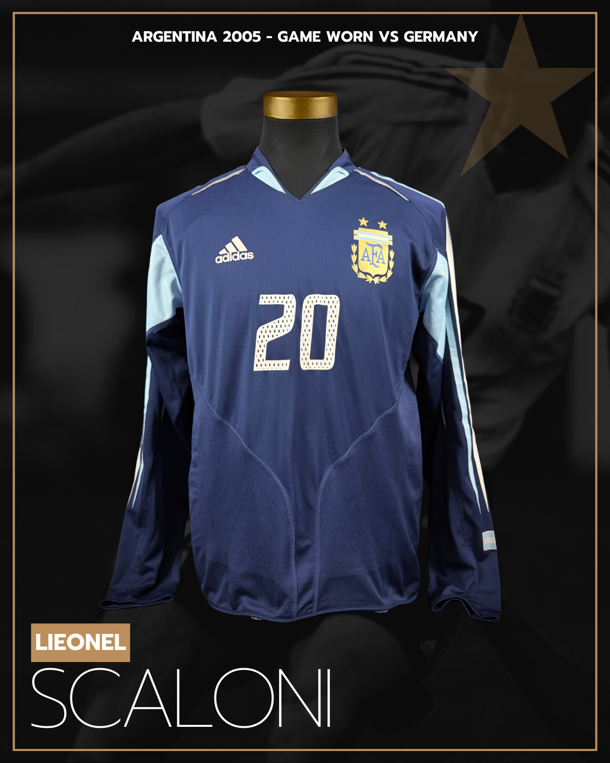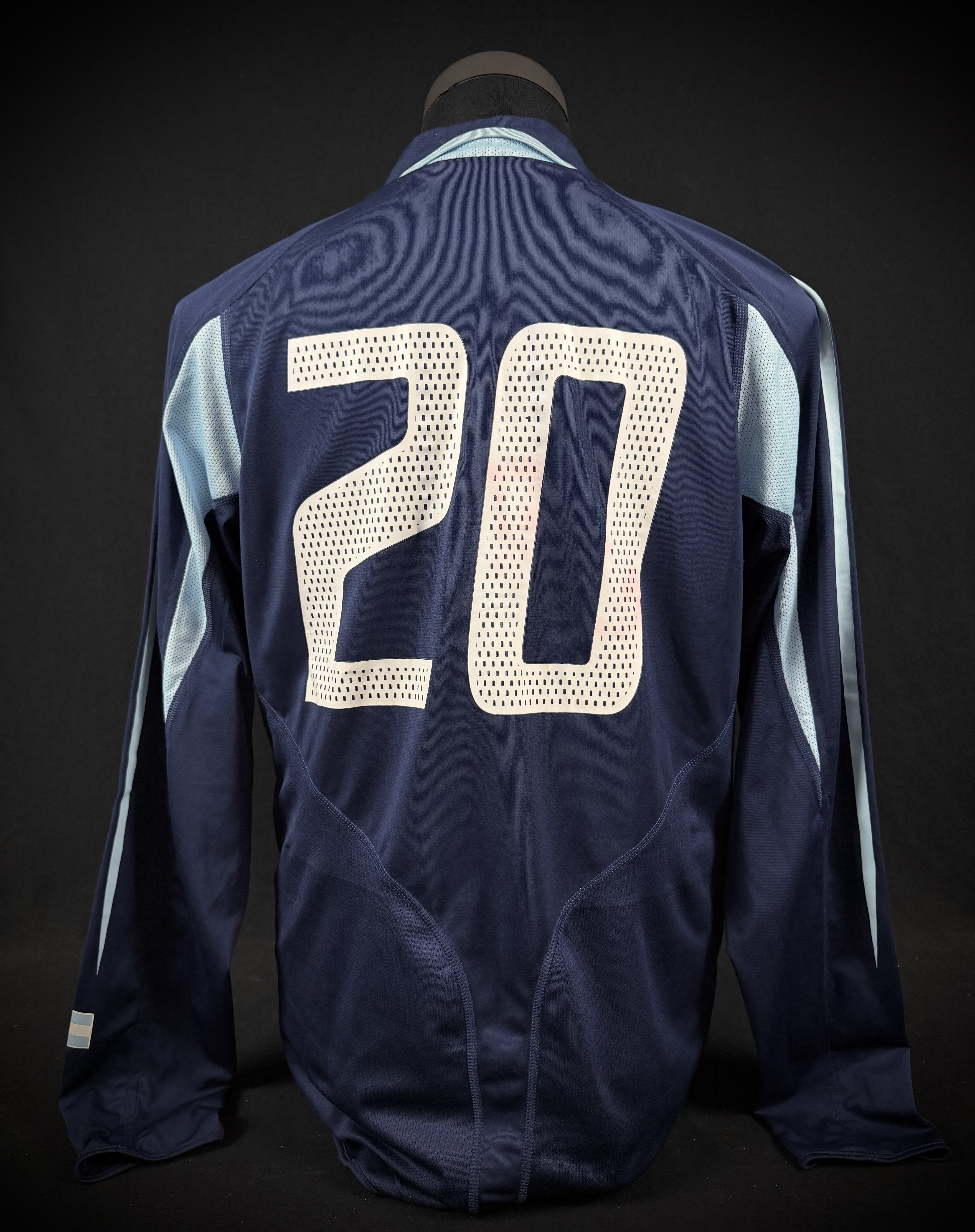 NOTE 1: Jersey worn on pitch on February 09th, 2005 by the current world cup champion coach Lionel Scaloni. This was the only game where Scaloni worn this beautiful full dual layer design very hard to find.