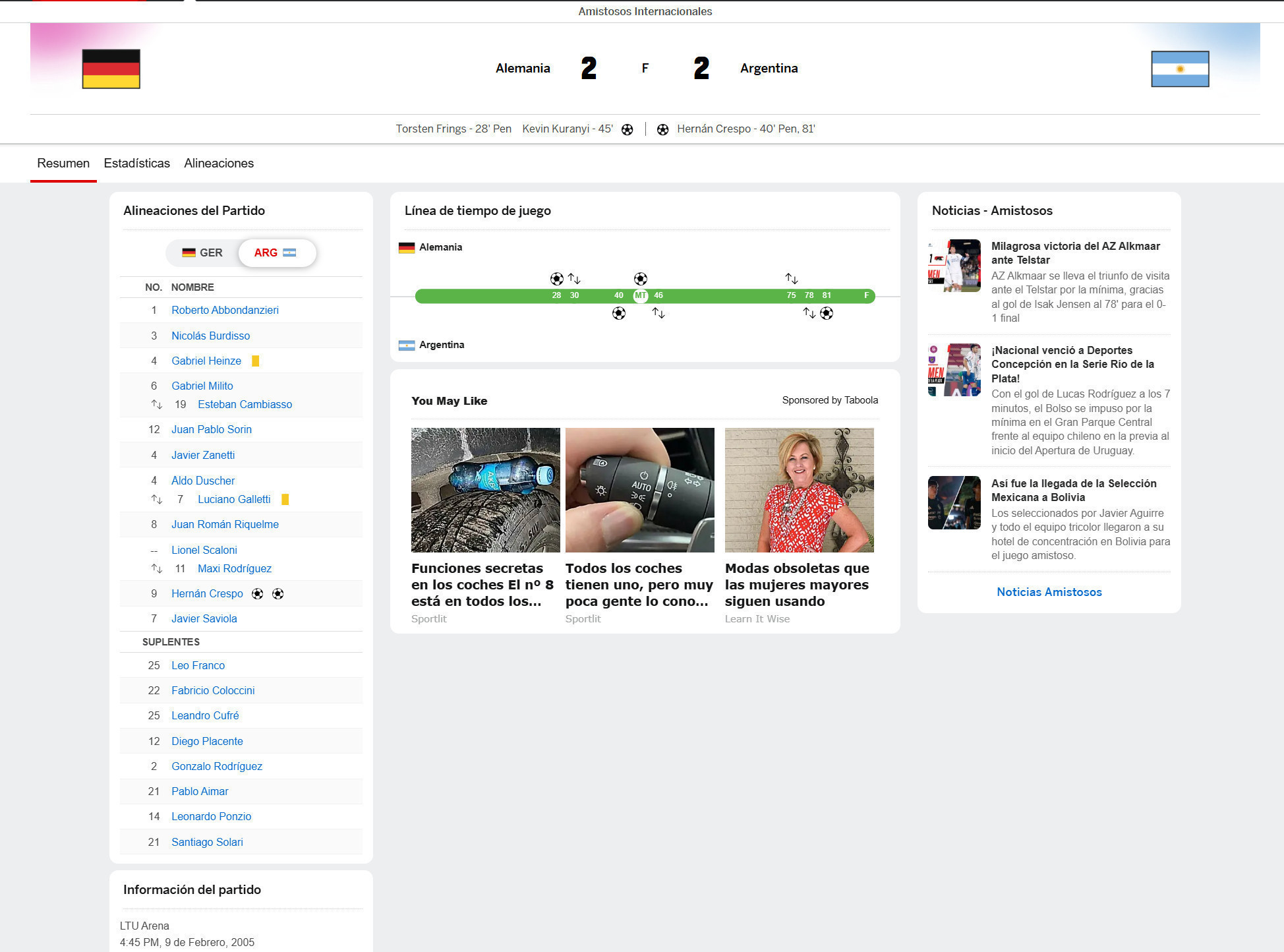 Date: 09/02/2005 | LTU Arena Stadium | DusseldorF, Germany.