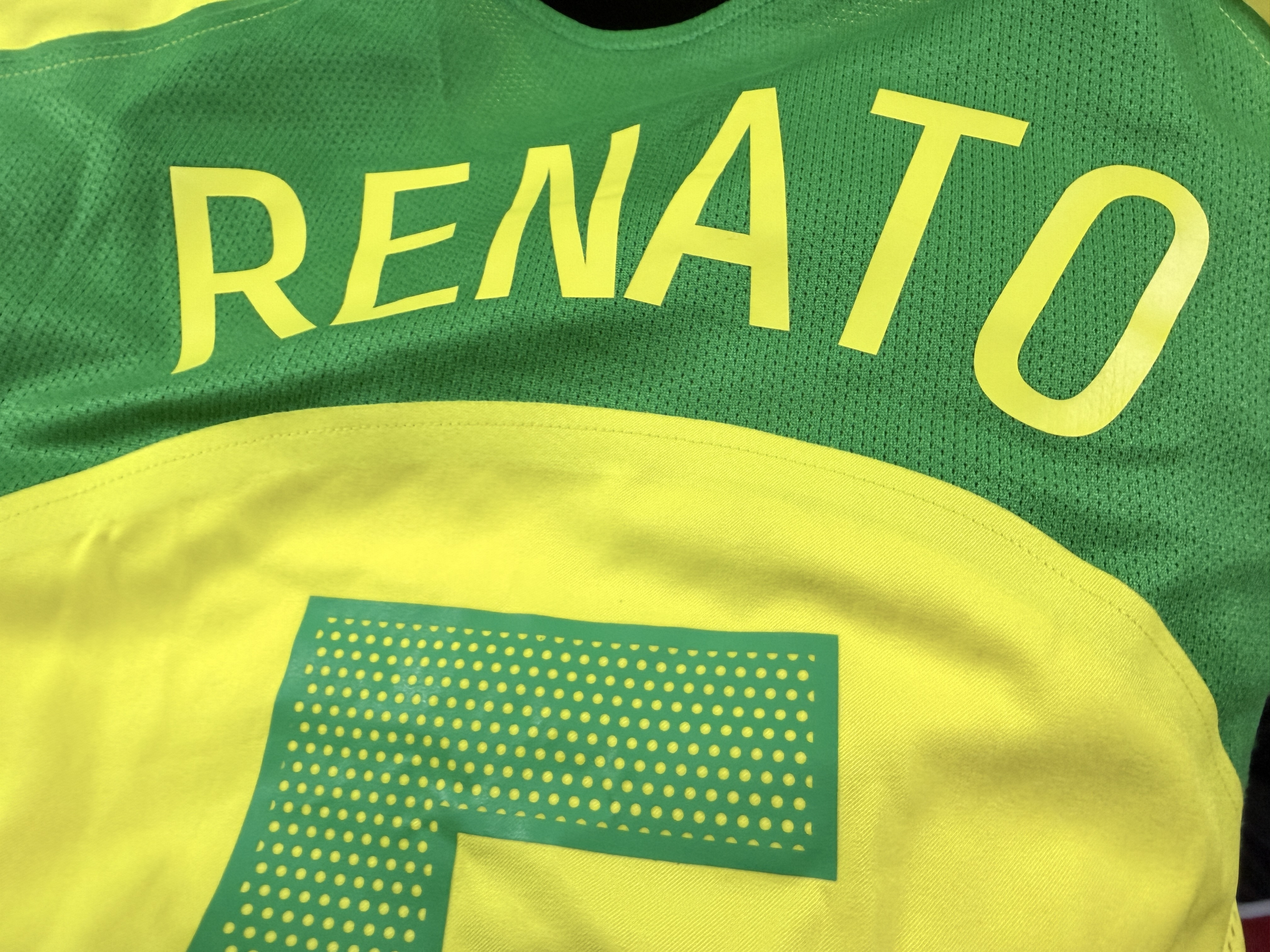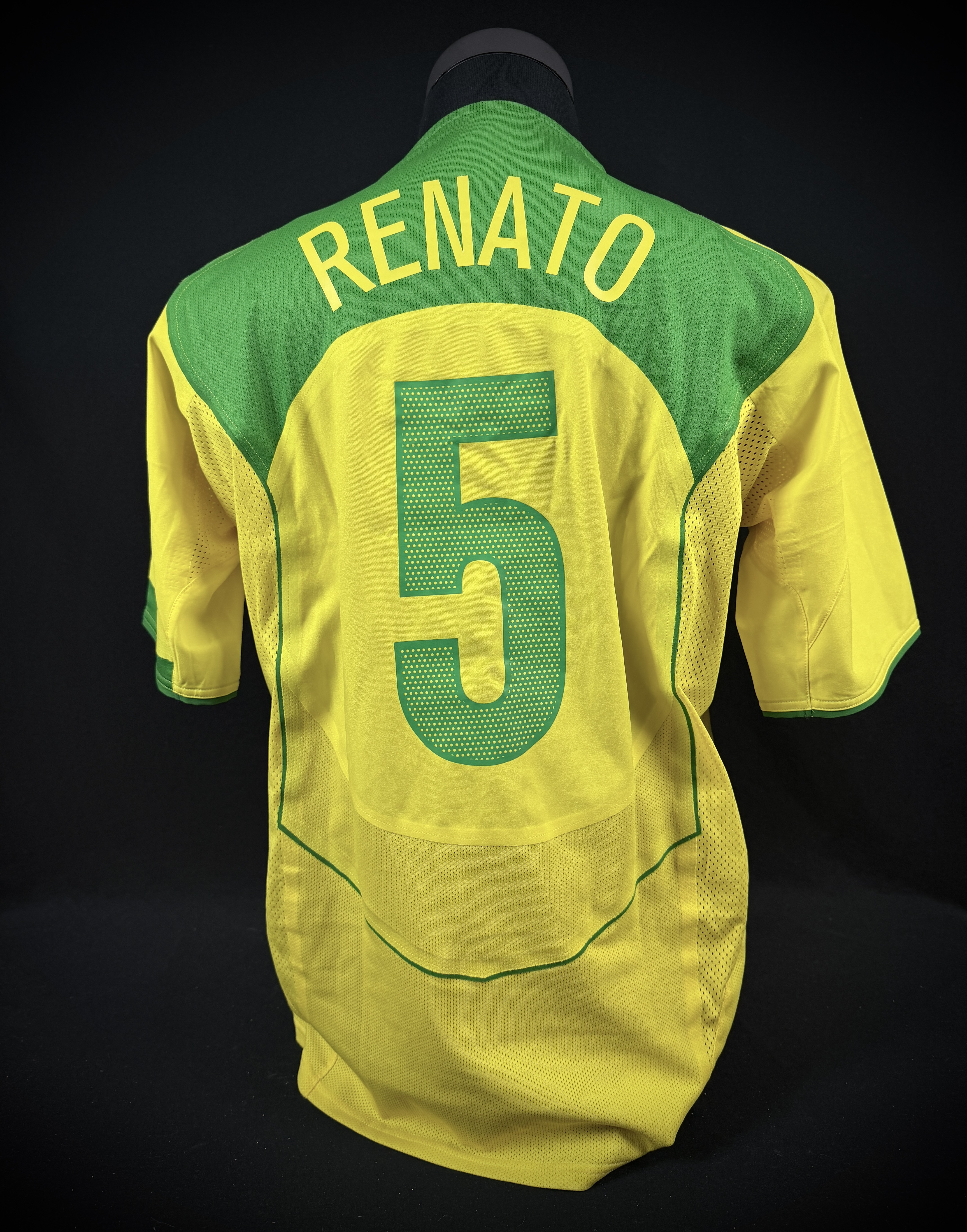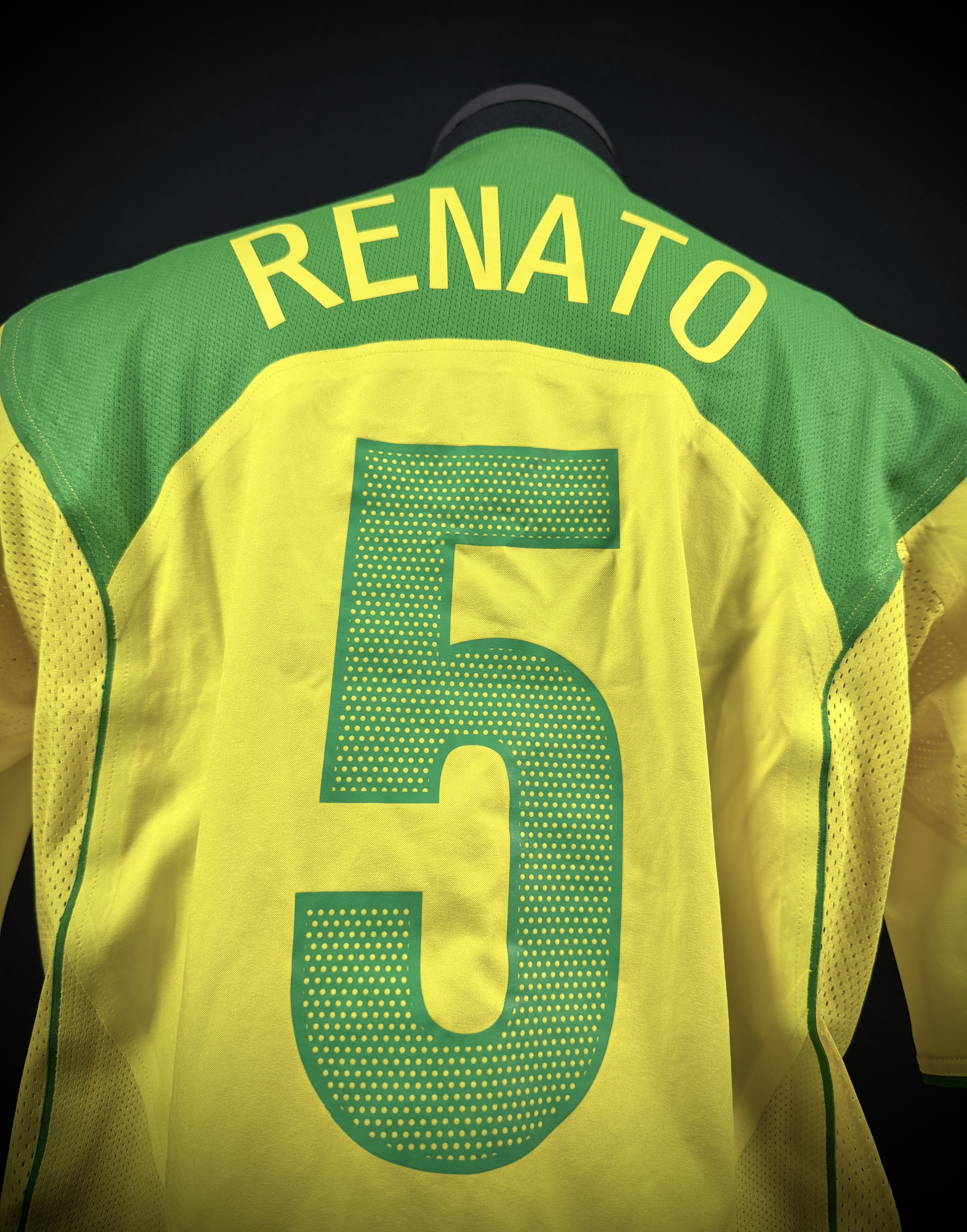 NOTE 1: Jersey issued for the America Cup Group stage match on June 08th, 2004 fopr Renato and swapped after the match in kitroom with Rodrigo Pérez. Both players played 90'. Brasil played with long sleeved that game.