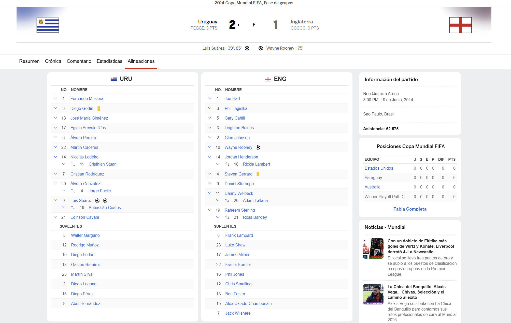 Competition: 2014 BRASIL FIFA WORLD CUP | Group D Stage | Matchday 2