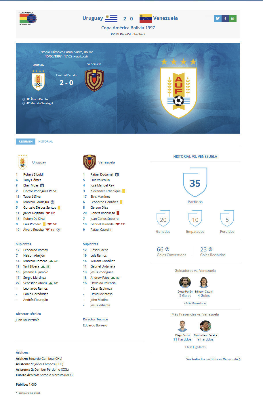 Game: URUGUAY vs VENEZUELA (2-0)