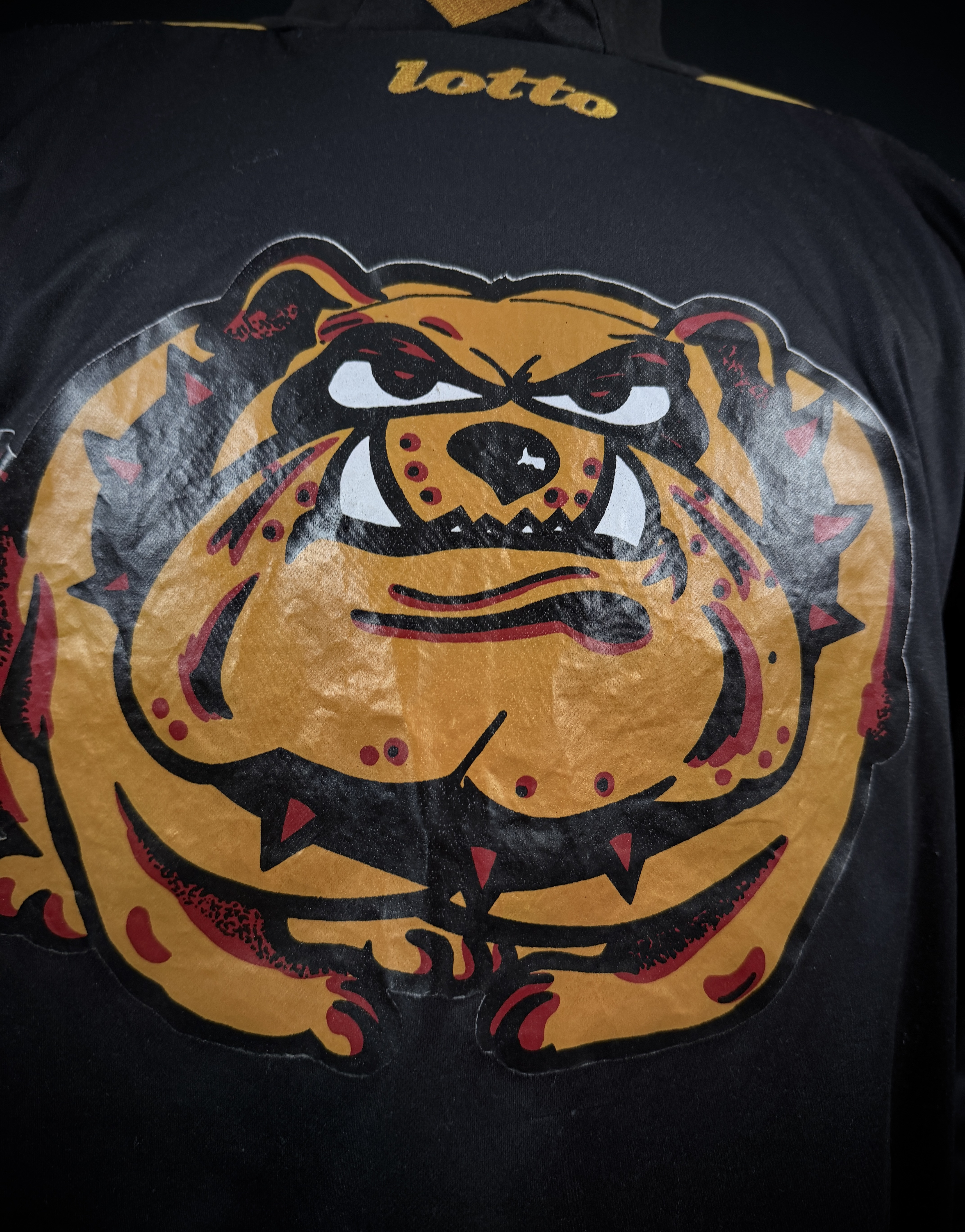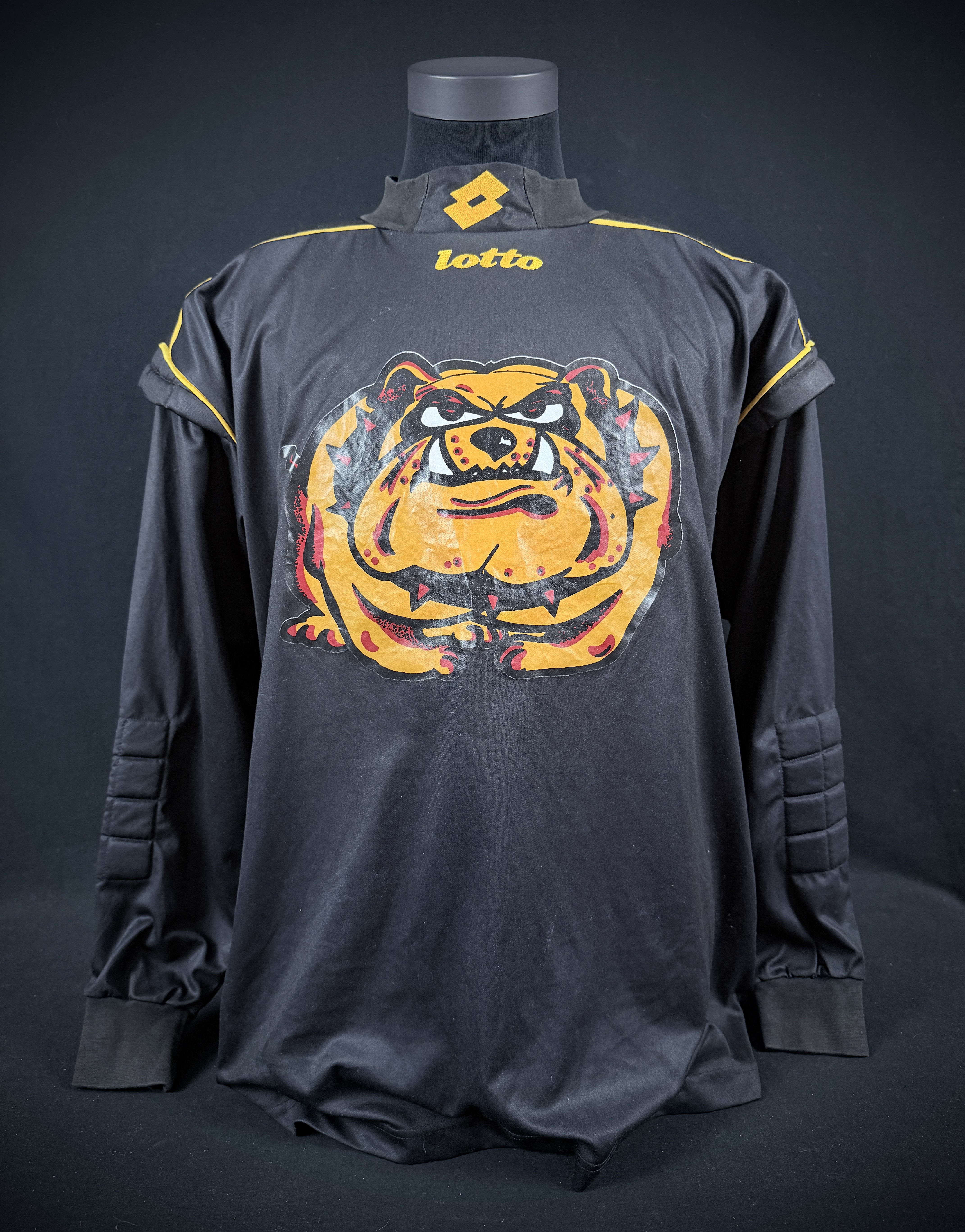 NOTE 3: ONLY WORN IN 4 MATCHES! Chilavert used the bulldog image with the Paraguayan national team in only 4 matches of the qualifiers for the 1998 World Cup qualifiers vs Colombia ( Matchday 1), Argentina ( Matchday 4), and Chile ( Matchday 5) , but all 4 models with different details but the only one with lotto brand on collar was this auctioned jersey vs Uruguay on June 02nd, 1996 for Matchday 2. (Paraguayan team worn Rebook brand, but Chilavert was worldwide star and had some "licenses".