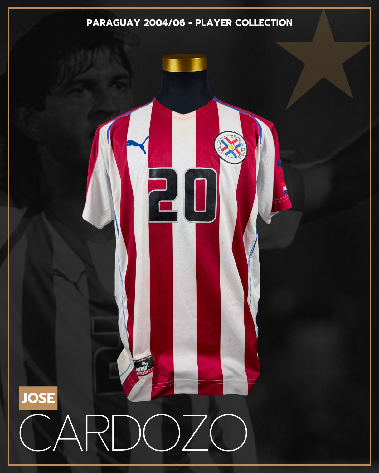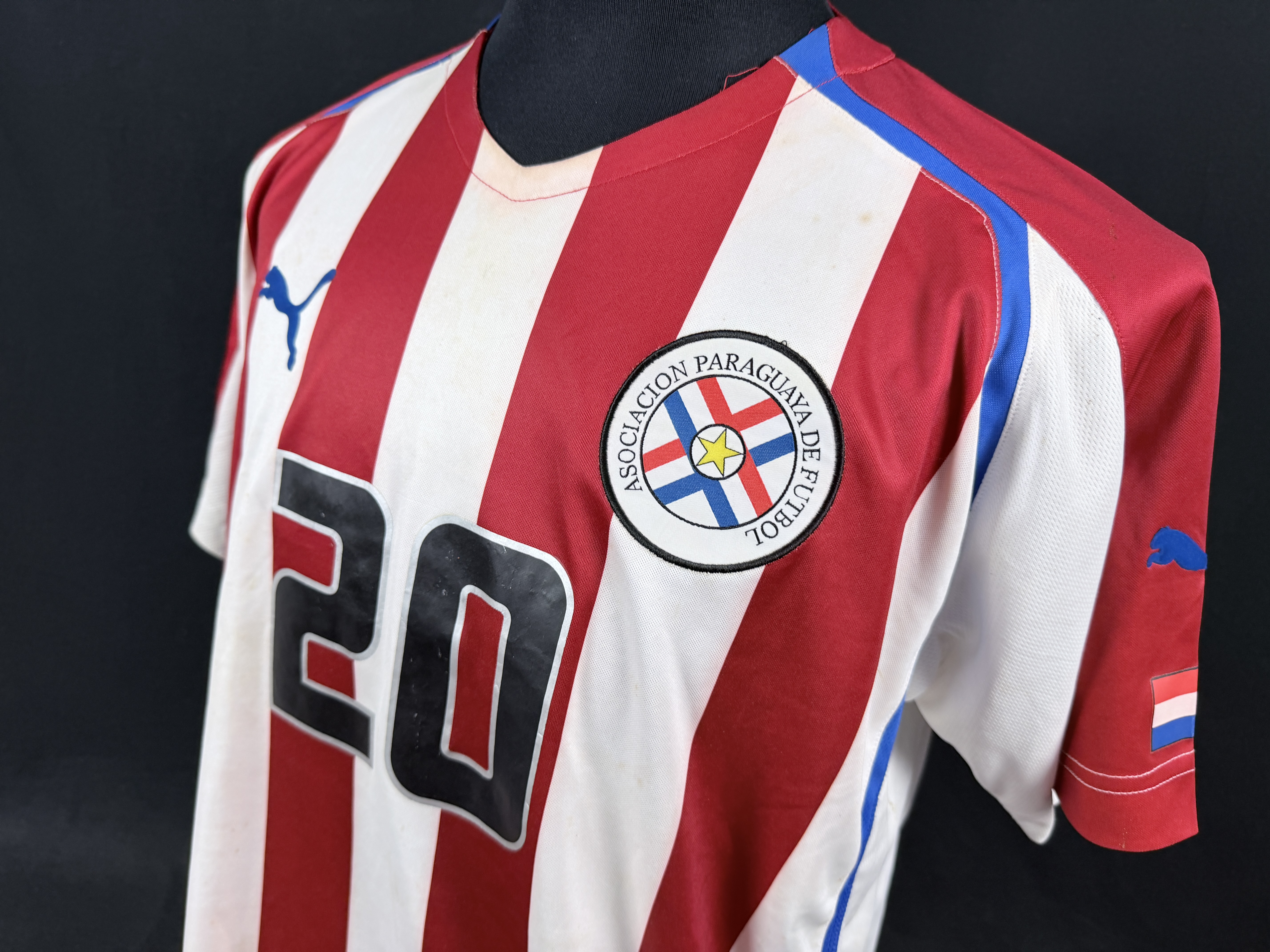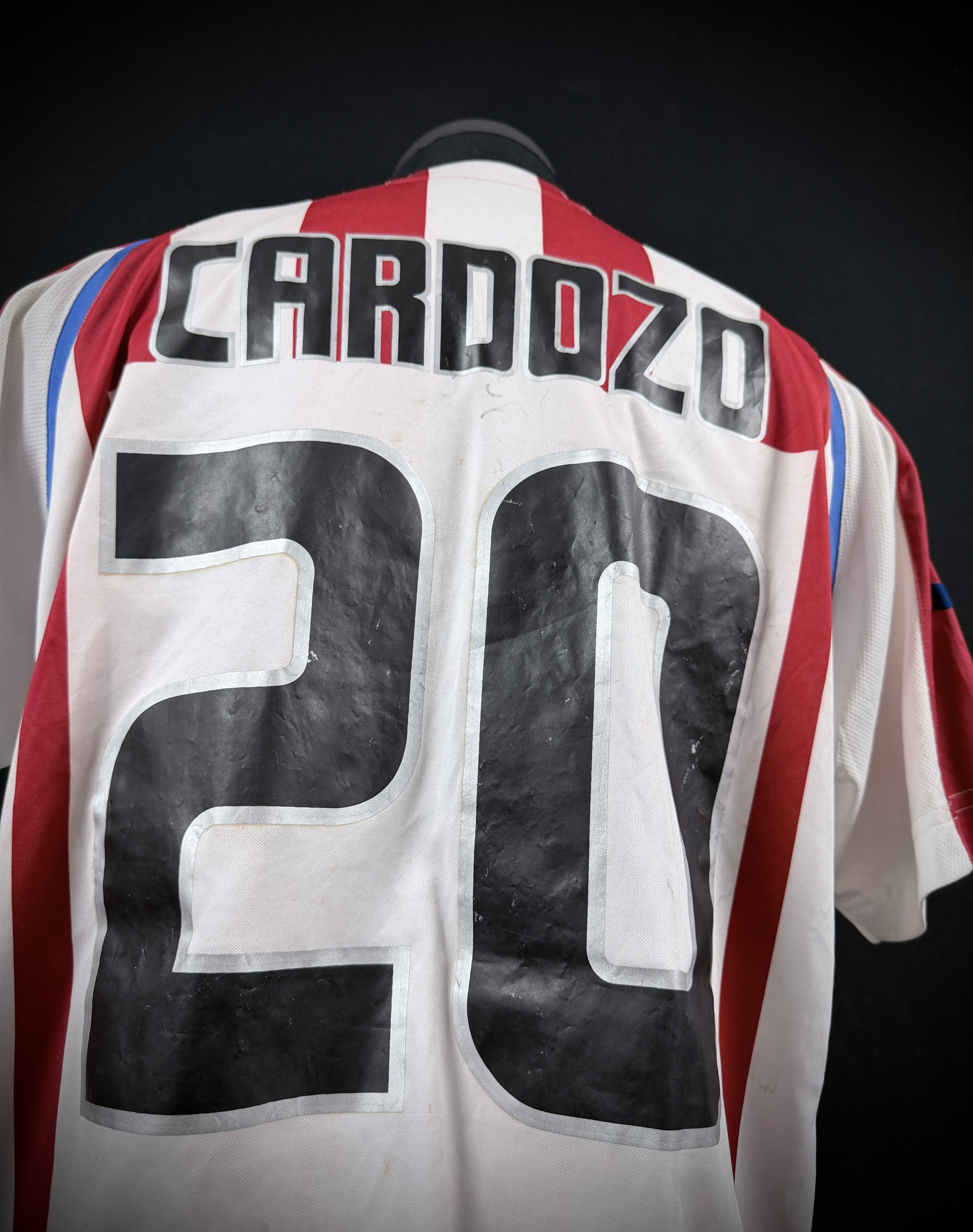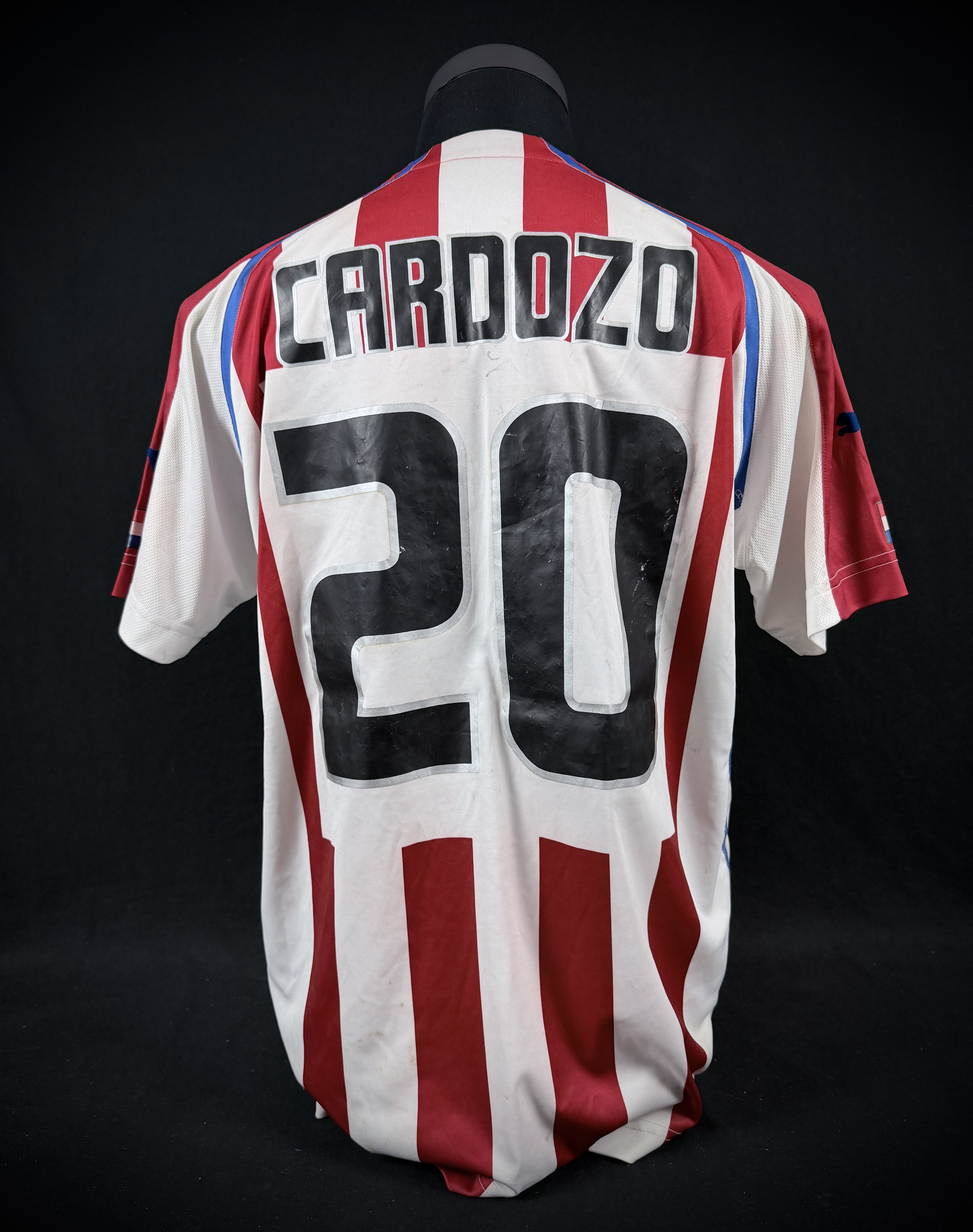PROVENANCE: Jersey comes from former international player & paraguayan legend José Saturnino Cardozo. All this exclusive pieces were inherited by his stepson, and later acquired by a well-known Paraguayan collector, who is the current consignor. So amazing Cardozo's personal collection with unprecedent provenance for amazing jerseys worn/issued by Cardozo, swapped after known matches, or gifted to him after 17 year career being a world class striker in countries as Swiss, Argentina, Paraguay, Chile, México. So, as Dream Auctions we are proud to placed his story in the best hands, yours.