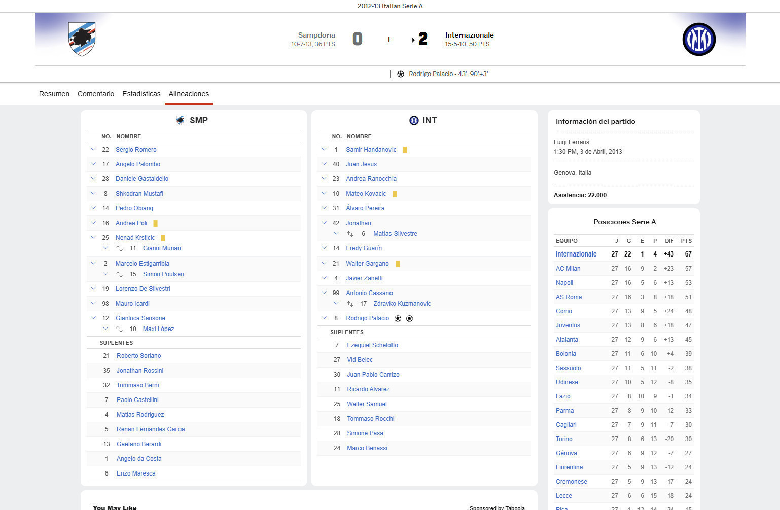 Date: 03/04/2013 | Luigi Ferraris Stadium | Génova, Italy.