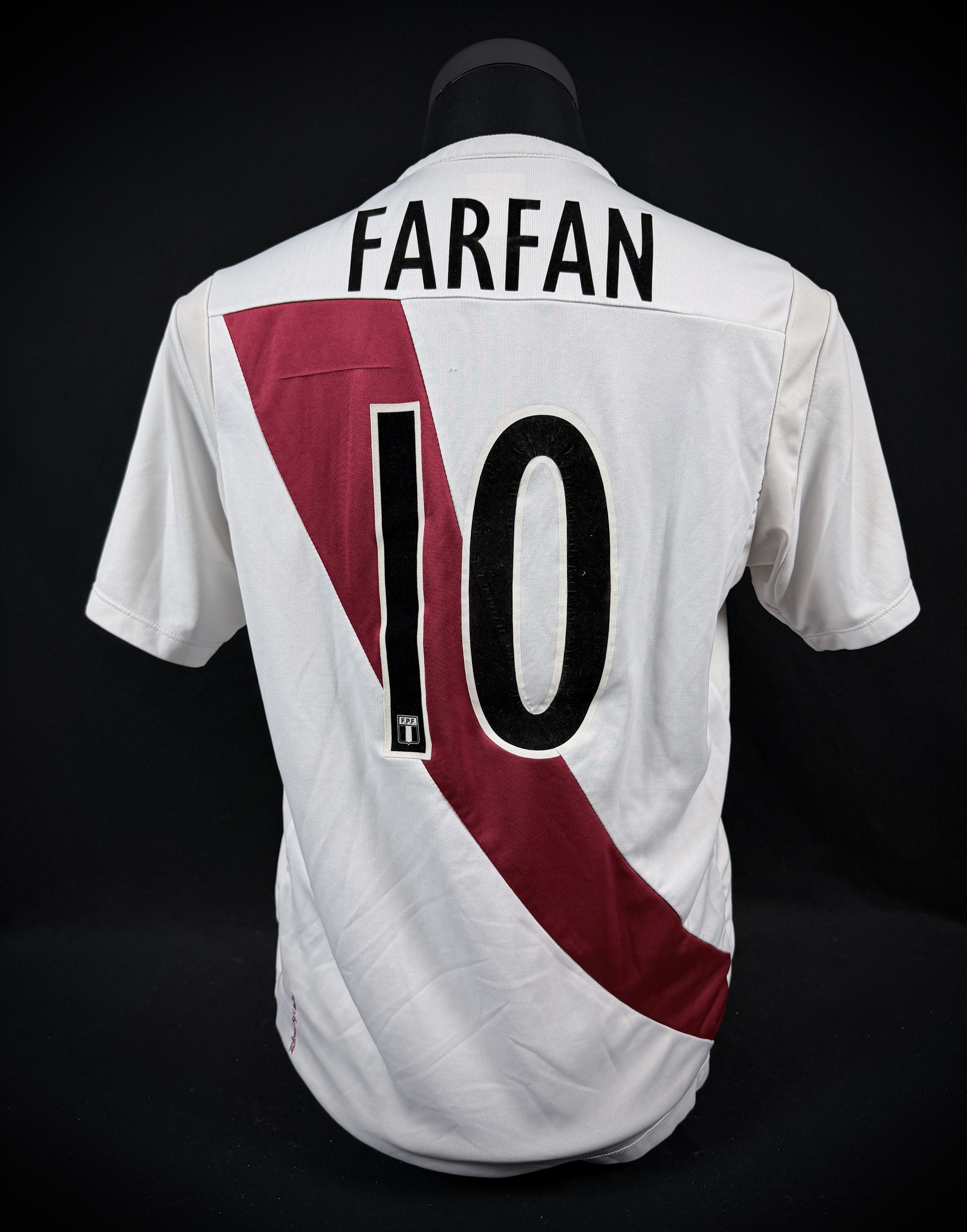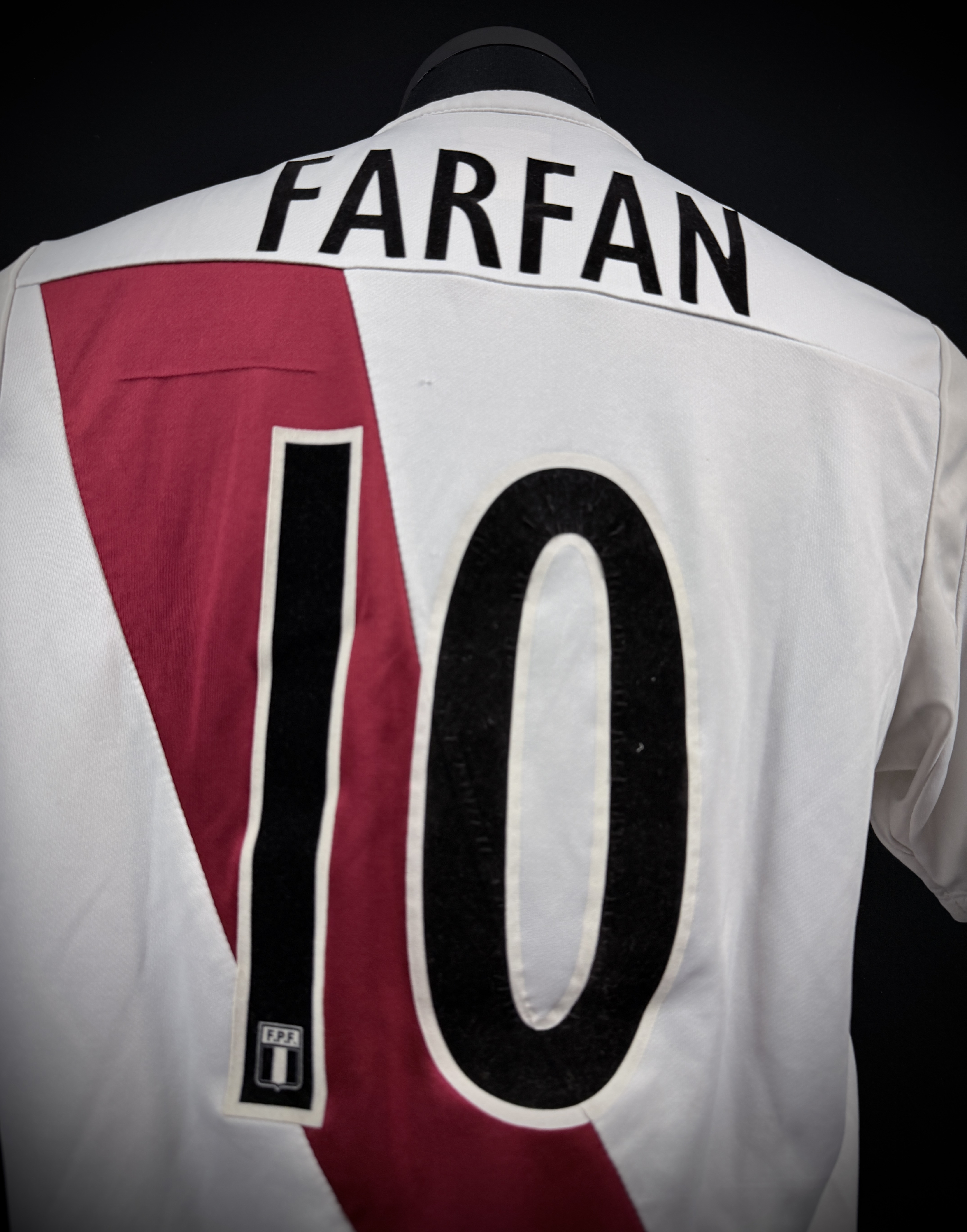 NOTE 1: Jersey worn from one of the most iconic peruvian players in last 15 years "LA FOQUITA" Farfán. . As declared by provenance gifted to Barco after a match in the kitroom due their friendship along years. Farfán scored 27 goals in 100 caps (2nd place in history) with national team becoming one of the most recognized players in its golden generation.
